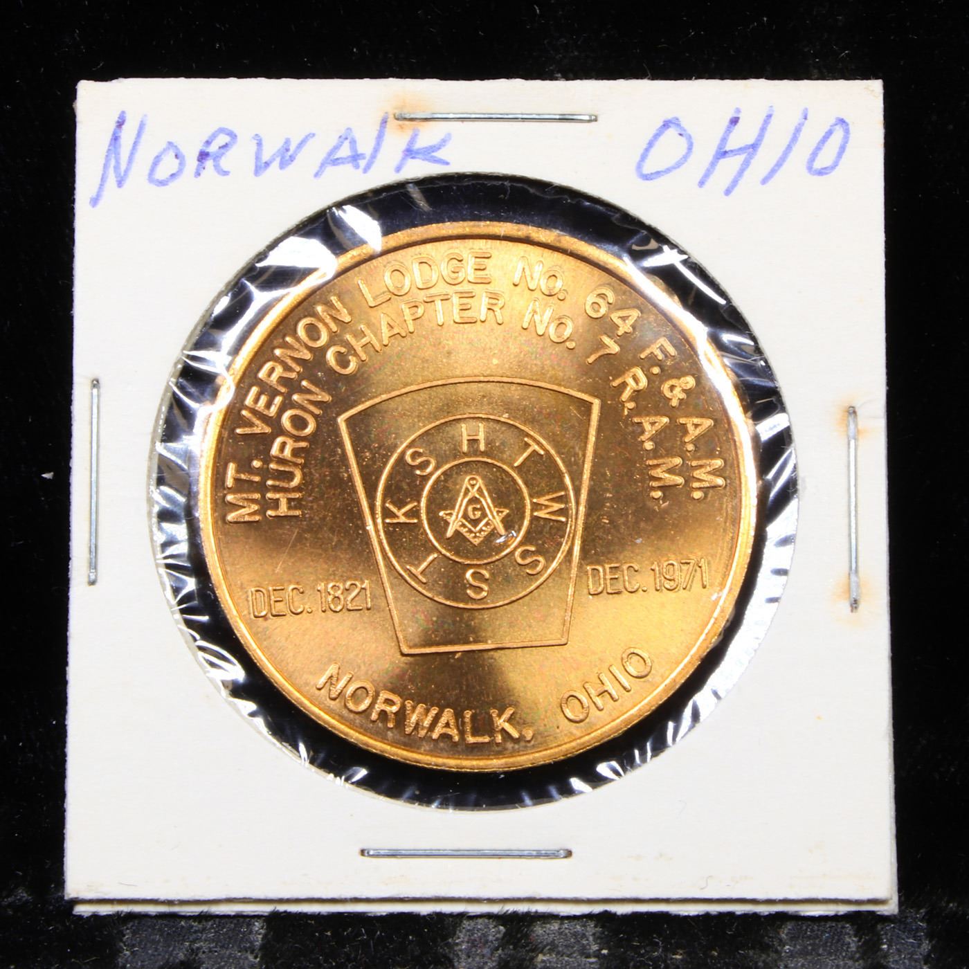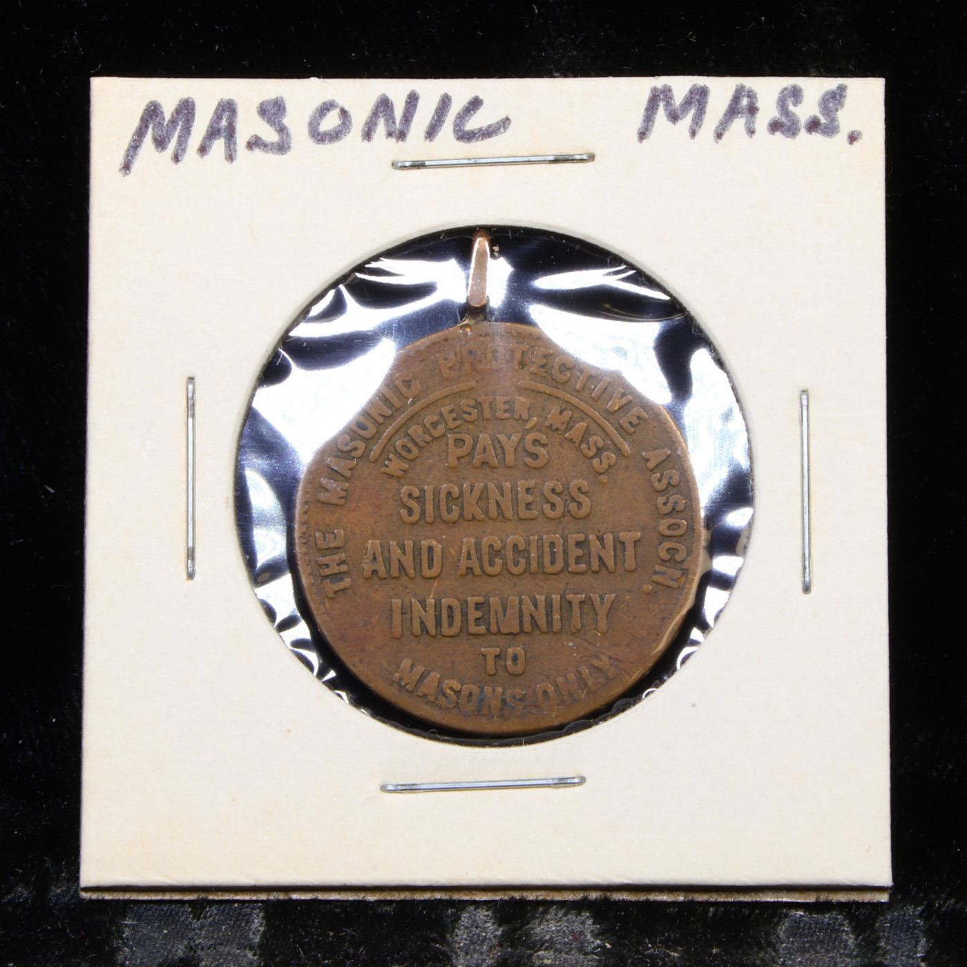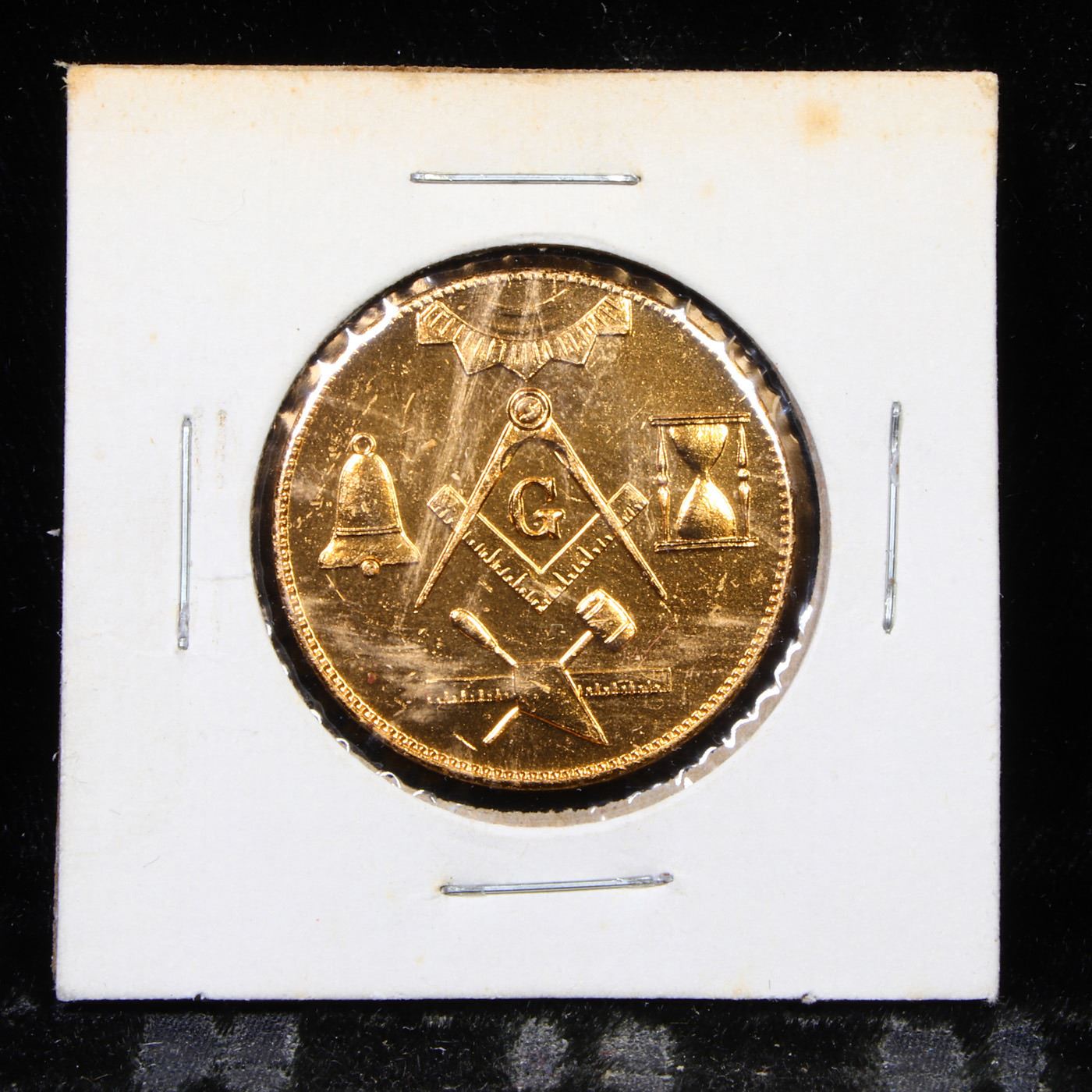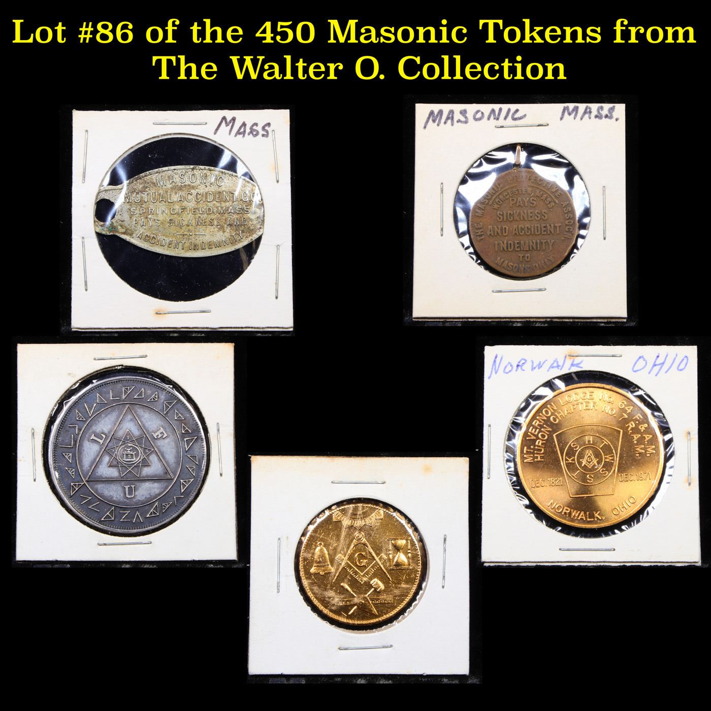 Lot #86 of the 450 Masonic Tokens from The Walter O. Collection. We Recently received a very Large Collection of 450 Masonic Tokens and coins. This collection was one man’s hobby for over 40 years. He collected each and every one with care and attention to detail and variety. Some of them are amazing and incredibly rare and highly sought by collectors and Masons. Here is a Brief Overview : Masonic coins often raise many questions for those looking to better understand the significance of the coins themselves as well as the symbolism represented in their imagery. In fraternal culture as a whole, symbolism has always been a significant part of these organizations’ identity, especially in Freemasonry, as Masonic coins are rich with symbolism, reflecting different events and characteristics of Freemasonry that give them the priceless value they hold. There are several varieties of masonic coins and tokens, and all tokens will fall into one of the following categories: a token celebrating a particular mason, lodge or event; an initiation token showing when a Brother was initiated, passed and raised; and finally the mark mason token (or penny) which signifies a pivotal part of a Mason’s initiation. Because symbolism was so important to fraternal culture, these small coins are rife with meaning. The most ubiquitous representation of the Masons was the letter "G" surrounded by a compass and square, representing the holy geometry of God. Some tokens feature the letters "H.T.W.S.S.T.K.S.," which means "Hiram the Widow's Son Sent to King Solomon," the biblical story that must be acted out to reach the third, or Master's Degree, in Freemasonry. Additionally, many contain either Apron and gloves: These symbols stand for living with a pure heart and to keep one’s hands clean. All-seeing eye: This symbol is designed to remind Masons that God and others always see their thoughts and actions. Ashlars: You may see rough and smooth ashlars on Masonic coins. They are to remind Masons of the contrast between man’s natural state and perfection and the Level: This symbol found on some Masonic coins reminds Masons that everyone is equal before God. We have broken the set up into groups of 5 Tokens in each lot. We have put 5 Lots per night over the 18 Nights of the Spring Auctions.