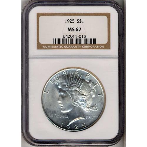 Lot 860 - 1925 Peace Dollar NGC MS67