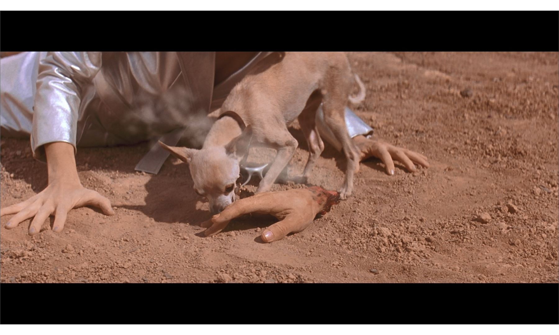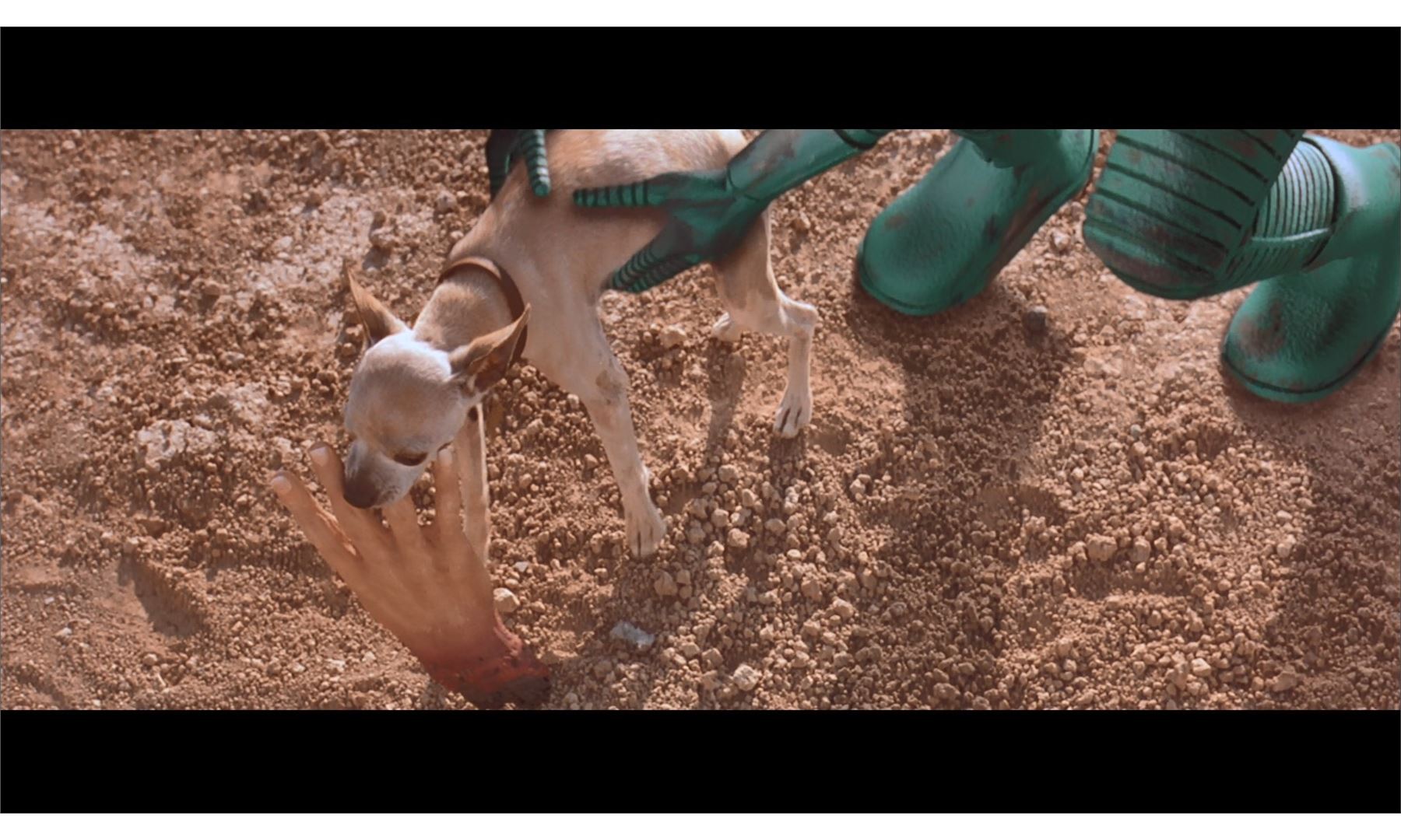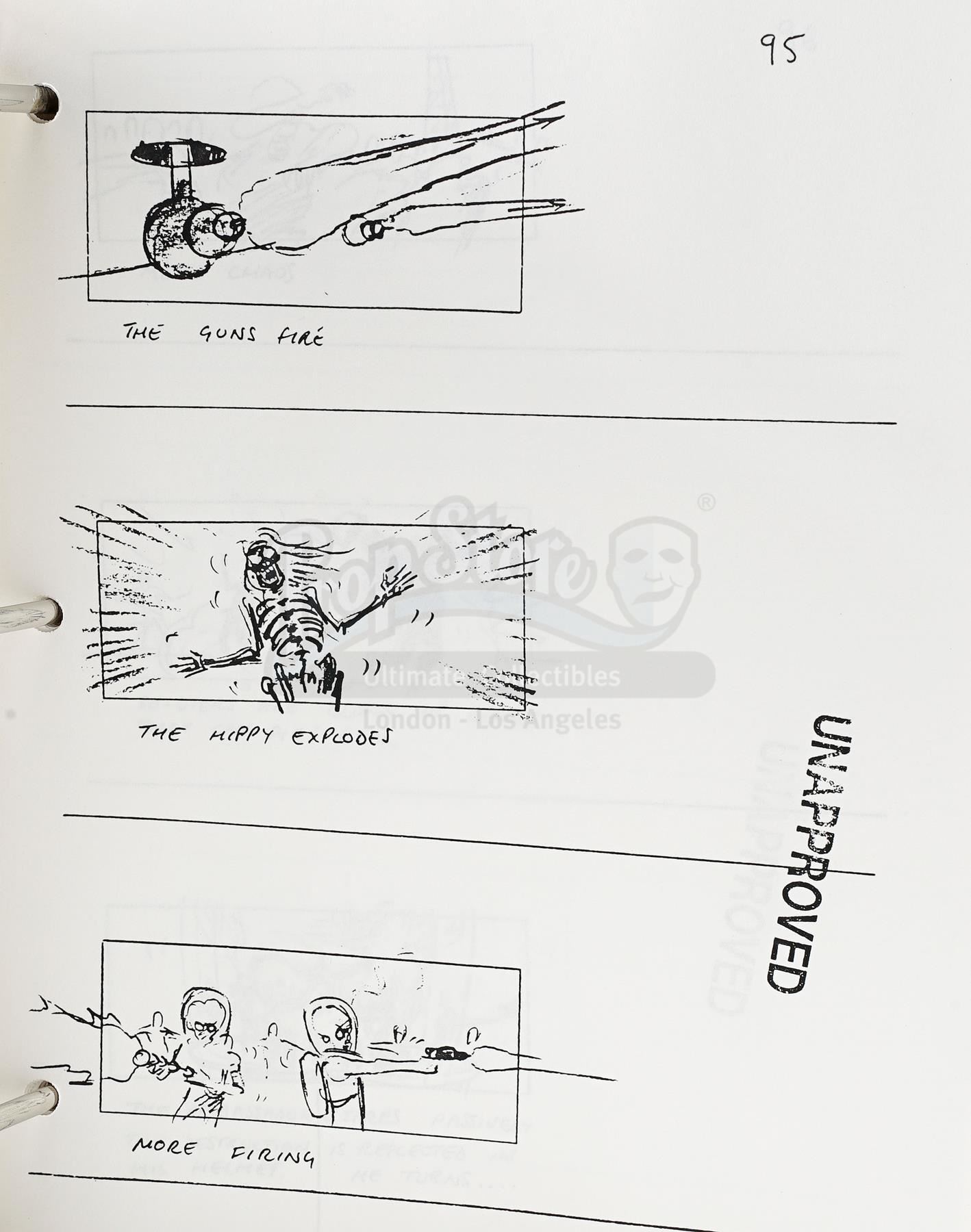 This lot will be auctioned on Wednesday, June 30th. The auction will begin at 9:00am PDT and lots are sold sequentially via live auctioneer; tune in to the live streaming broadcast on auction day to follow the pace. Note other lots in the auction may close on June 29th or July 1st. A production binder and dummy hands from Tim Burton's sci-fi comedy Mars Attacks!. The film's animal trainer used dummy hands to train for the scene where a dog carried off a severed hand during Earth's fatal first contact with the Martians. The black binder, labeled "Mars Attacks Storyboards + Script", includes storyboard copies, a script, schedules, call sheets, and a copy of Mad Magazine #353, which parodied the film. The two foam hands are painted white and brown. All are in good overall condition with wear to the hands from use, including scuffs, stains, and tears. Dimensions: 12" x 12" x 4" (30.5 cm x 30.5 cm x 10.25 cm) Estimate: $800 - 1,200