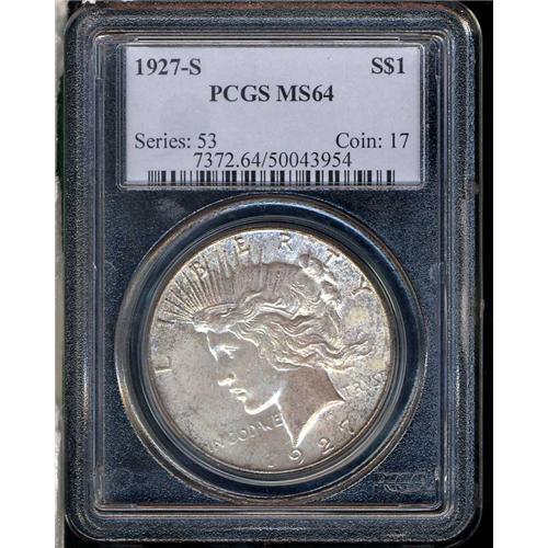 Lot 863 - 1927-S Peace Dollar PCGS MS64