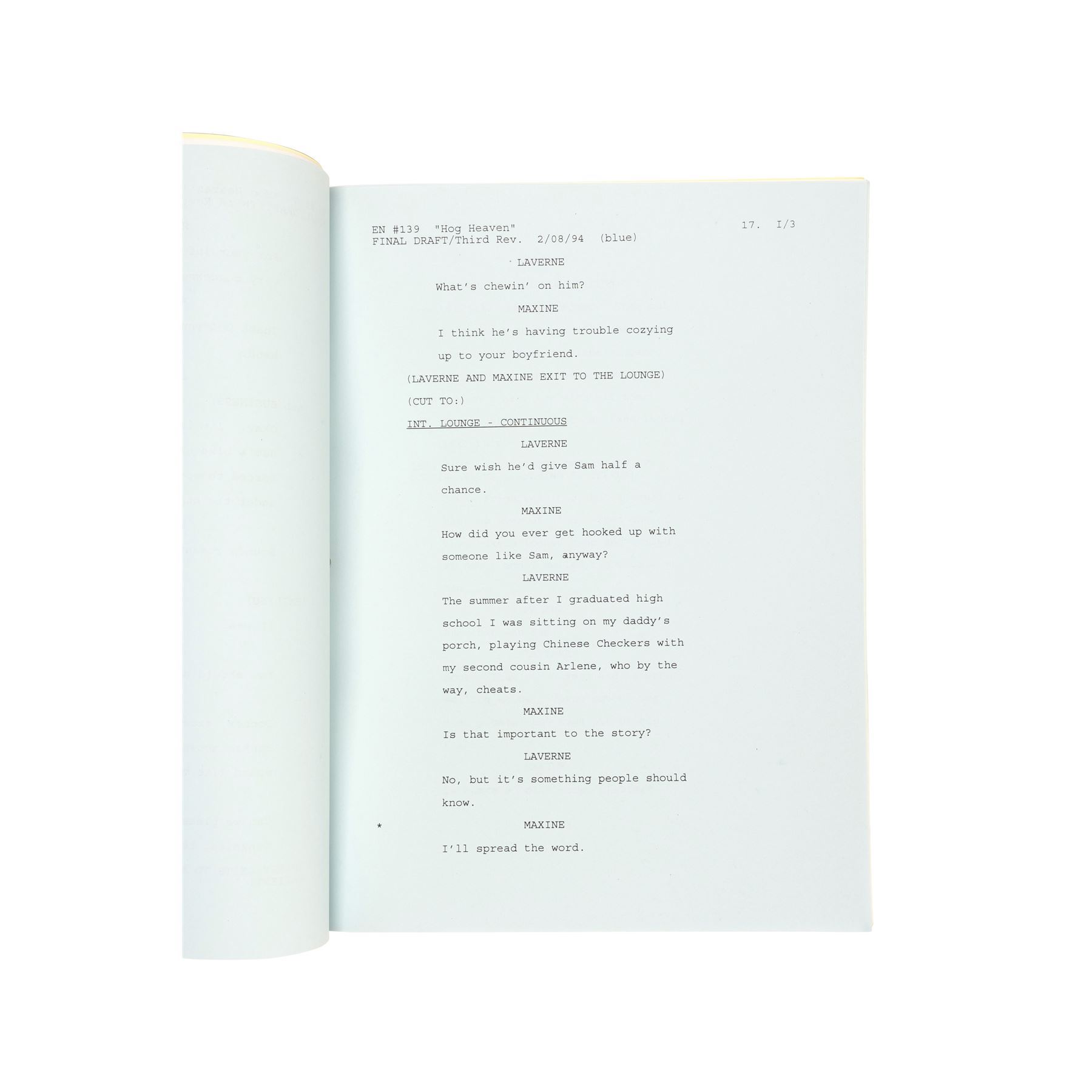 This lot comes from the collection of Estelle Getty's personal assistant and friend, Rich Weaver, and consists of seven brass-brad bound final draft scripts for the episodes "No Volunteers, Please," "Das Boob," "Brotherly Shove," "Hog Heaven," "Charley's Millions," "A Foreign Affair," and "The Devil and Dr. Westen." This lot exhibits minor discoloration and edgewear from age. Dimensions: (each) 8.5" x 11" x 0.25" (21.75 cm x 28 cm x 0.75 cm)