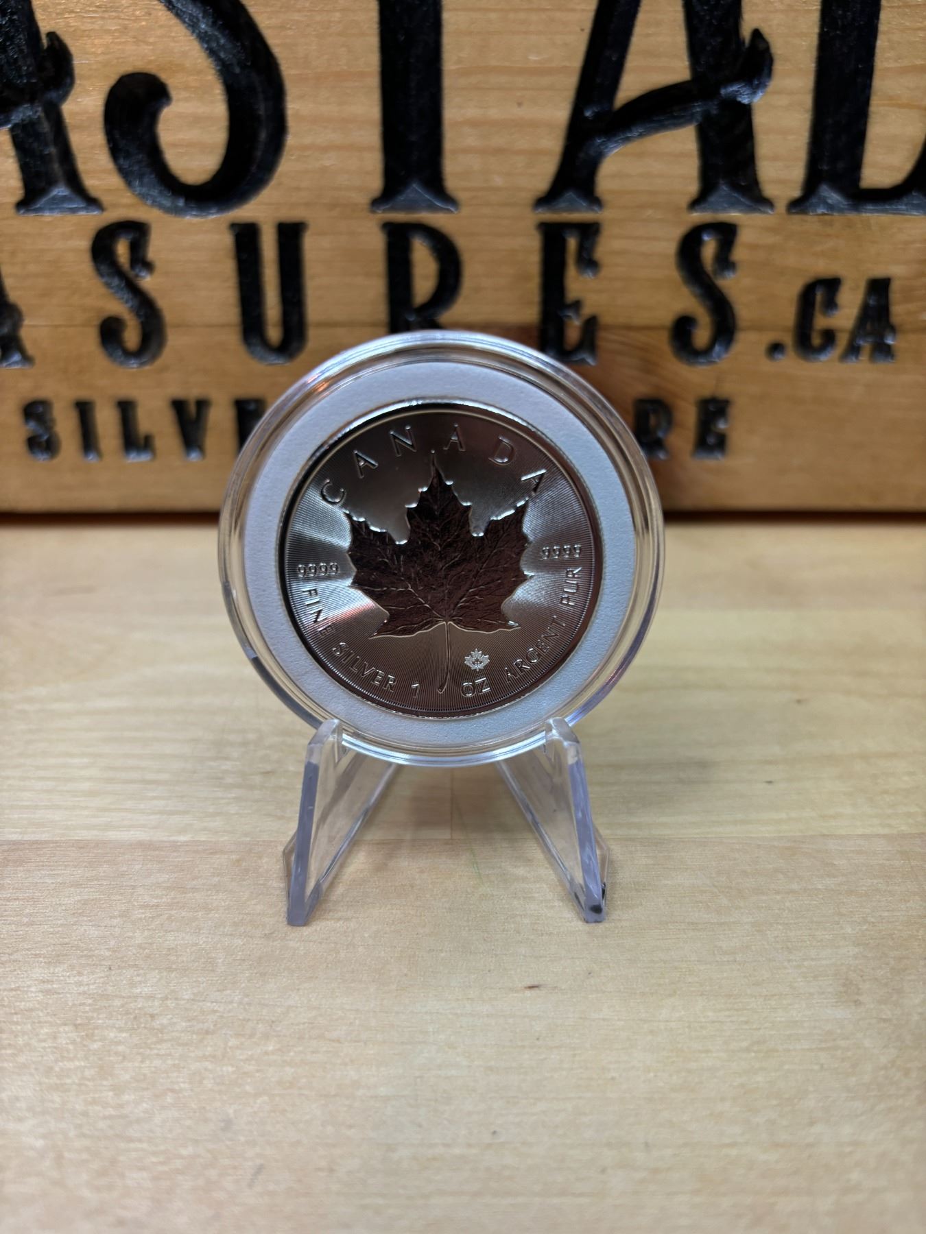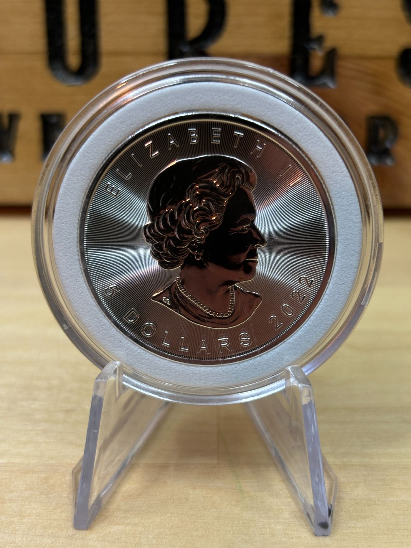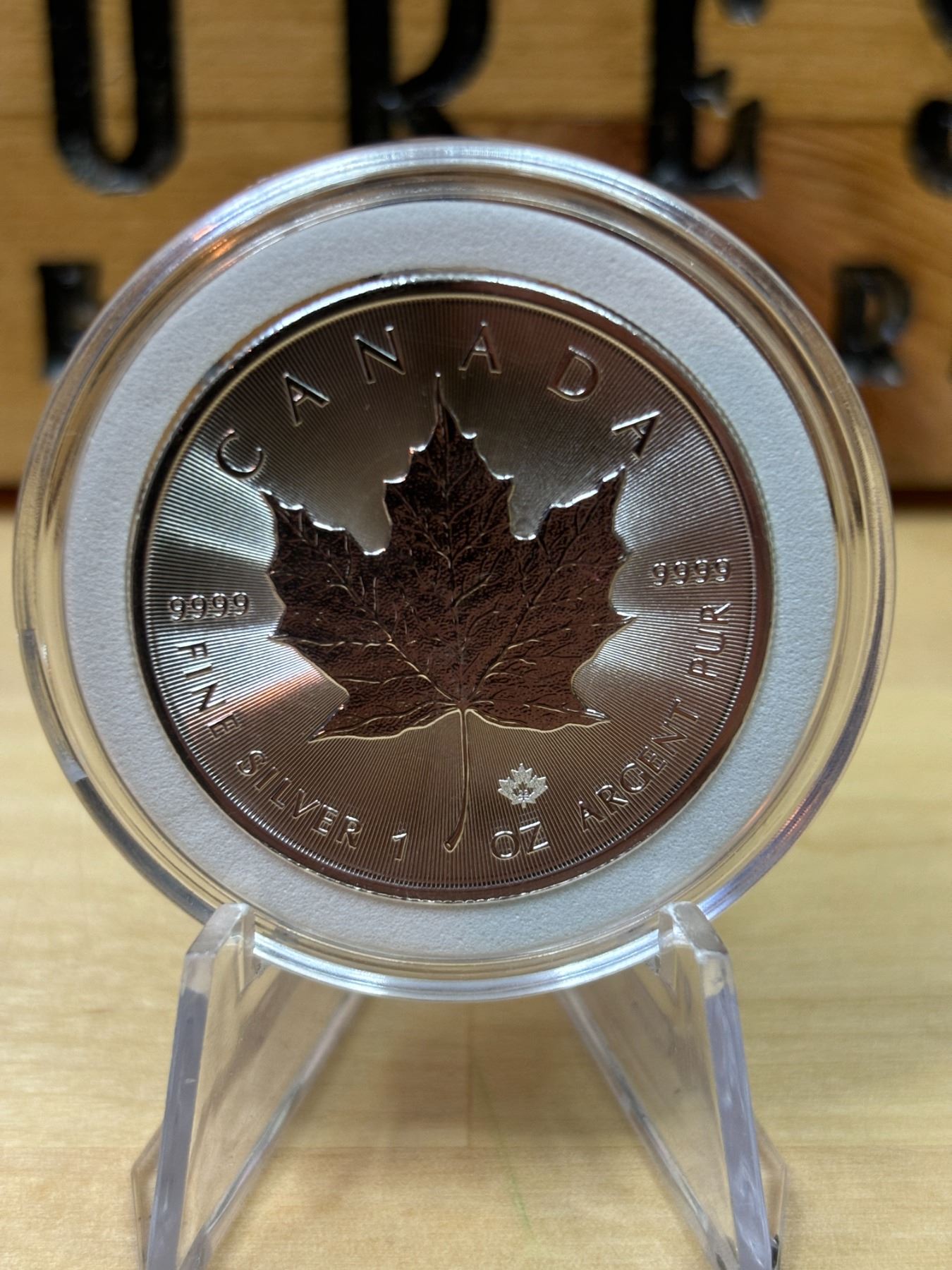 The 2022 1 oz Canadian Silver Maple Leaf is a .9999 fine silver coin minted by the Royal Canadian Mint. It features the iconic maple leaf on the reverse, with enhanced security features such as micro-engraved radial lines. The obverse showcases the new effigy of King Charles III, following the passing of Queen Elizabeth II, along with a face value of 5 Canadian dollars. Known for its high purity and craftsmanship, this coin is a favorite among collectors and investors.