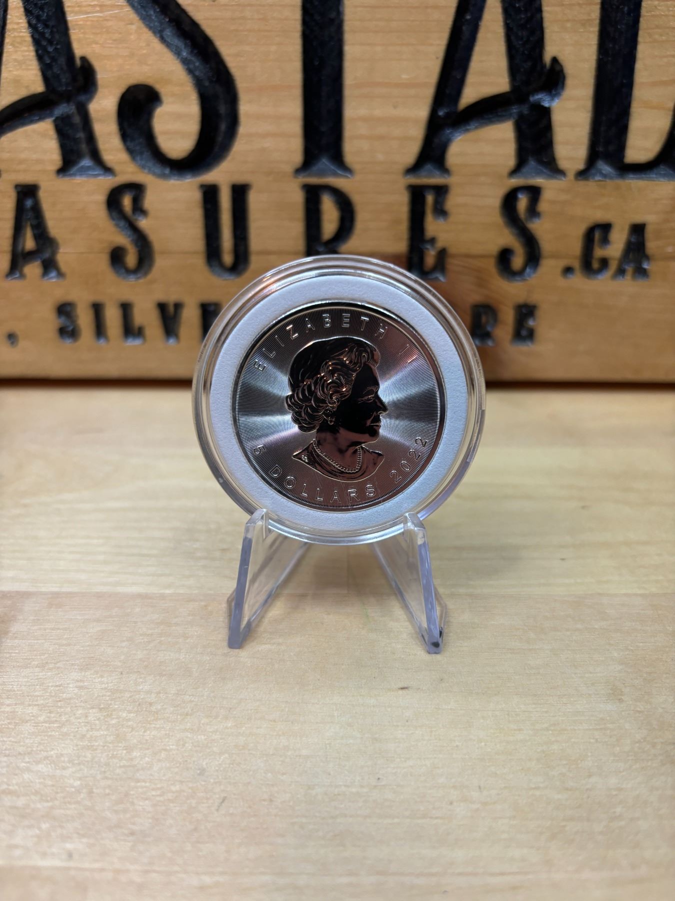 The 2022 1 oz Canadian Silver Maple Leaf is a .9999 fine silver coin minted by the Royal Canadian Mint. It features the iconic maple leaf on the reverse, with enhanced security features such as micro-engraved radial lines. The obverse showcases the new effigy of King Charles III, following the passing of Queen Elizabeth II, along with a face value of 5 Canadian dollars. Known for its high purity and craftsmanship, this coin is a favorite among collectors and investors.