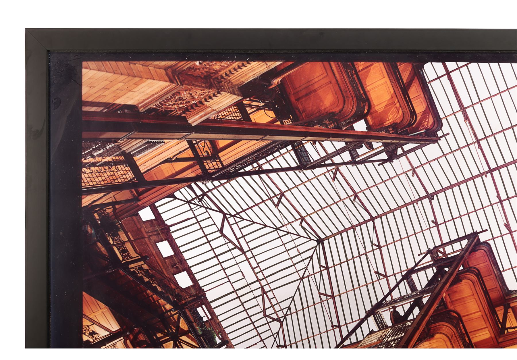 The photograph has been carefully removed from its glass pane for conservation and is now displayed in a black wooden frame behind acrylic. It can easily be re-laid on its original glass pane, or the pane can be shipped separately should the buyer so wish. Dimensions: 123 cm x 95 cm x 2 cm (48 1/2" x 37 1/2" x 3/4")
