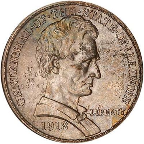 1918 Illinois Half Dollar. Full billowing luster associated with natural "from the commemorative holder" toning on either side. A well struck gem. (#9320)