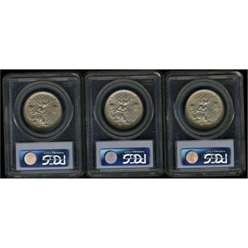1938-P,D,S Texas Half Dollar Set. Another toned set: PCGS MS65, PCGS MS65, and PCGS MS66. Lot of 3 coins. (#9397)<p><i>The Cross Rivers Collection</i>