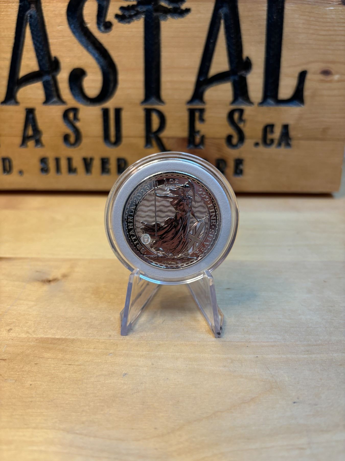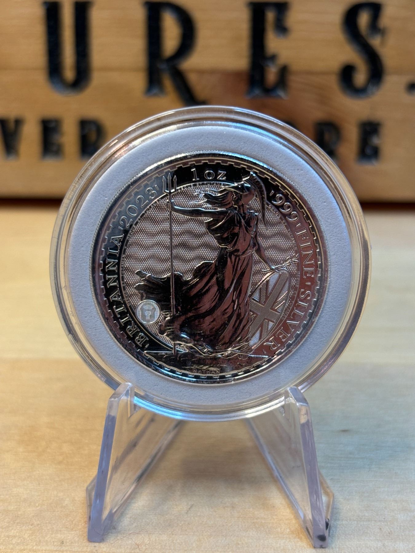 The 1 oz Britannia 2023 Silver Coin is part of the popular Britannia series, produced by the Royal Mint. It contains 1 ounce of .999 fine silver and features the iconic image of Britannia, symbolizing strength and resilience. The 2023 edition features an updated design with enhanced security features, such as a new background wave pattern and a holographic foil that changes in the light, making it more difficult to counterfeit. The coin is widely sought after by collectors and investors alike.
