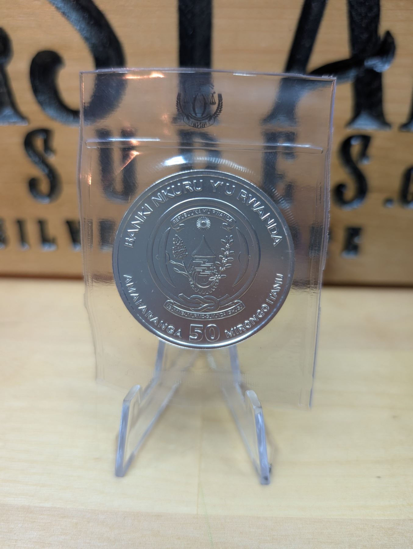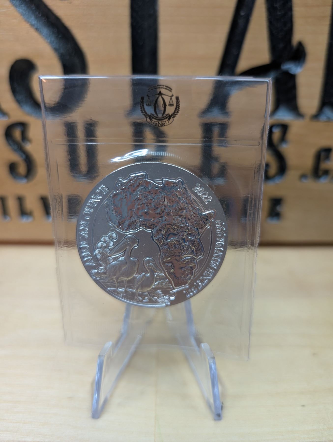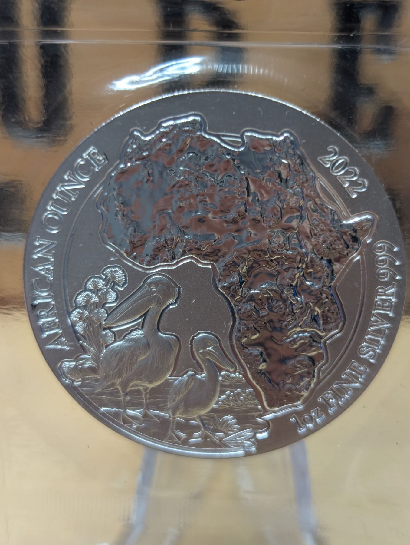 The 1 oz Pelican Rwanda silver coin is made from .999 fine silver and features a detailed image of a pelican, part of Rwanda's wildlife series. Issued by the Rwanda Mint, these coins are popular among collectors for their unique animal designs and high purity. The value is influenced by the current silver price and demand from collectors.