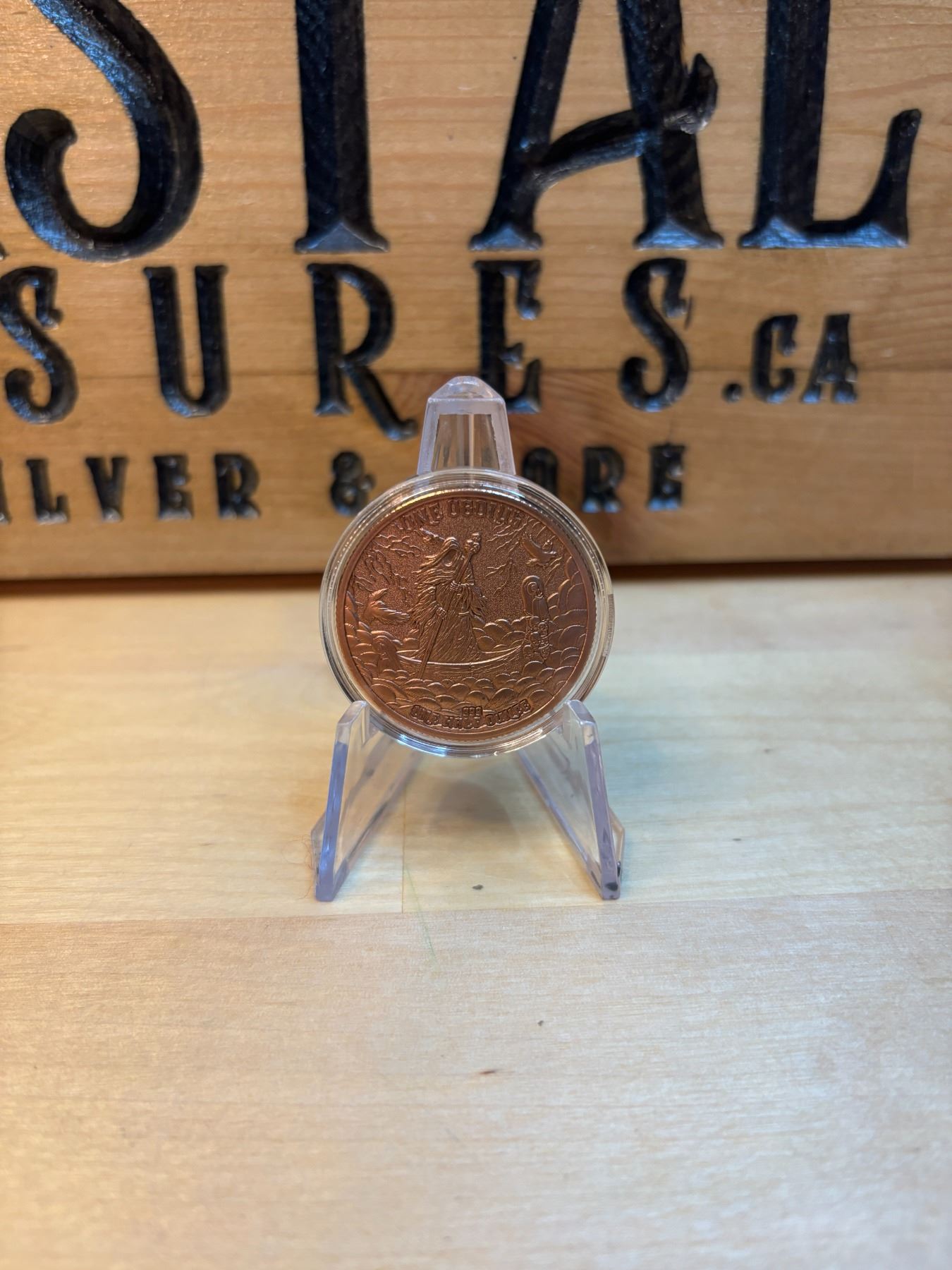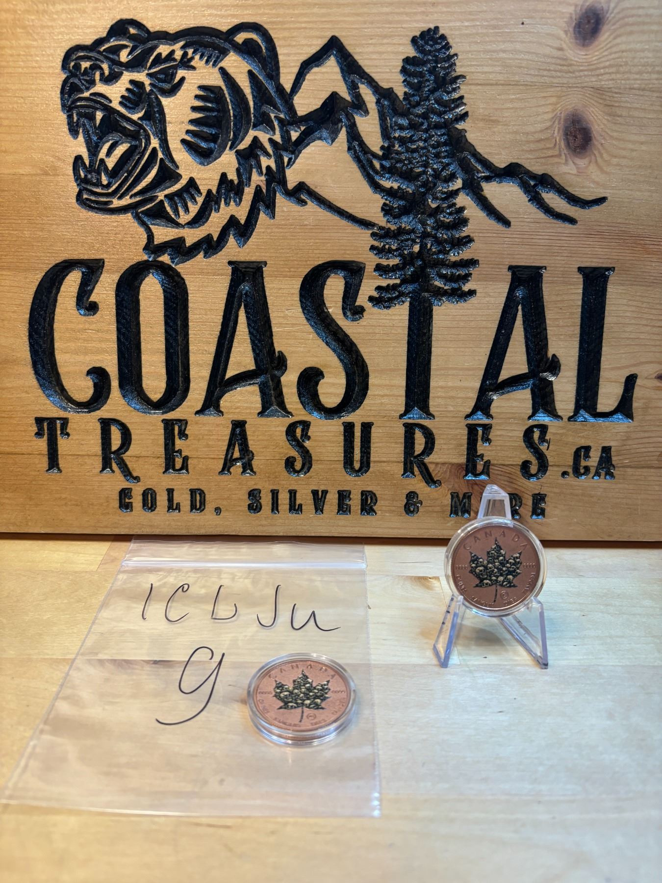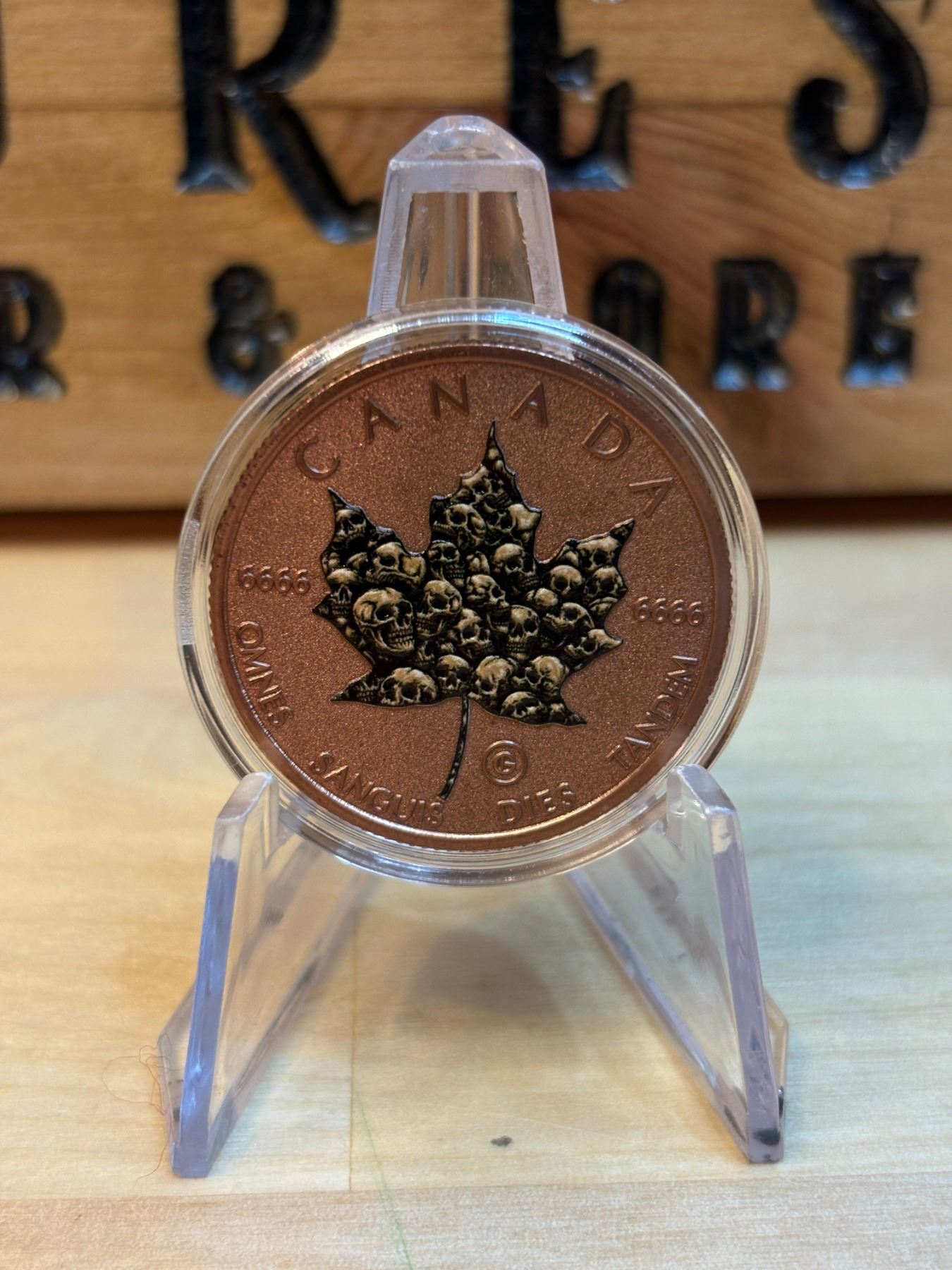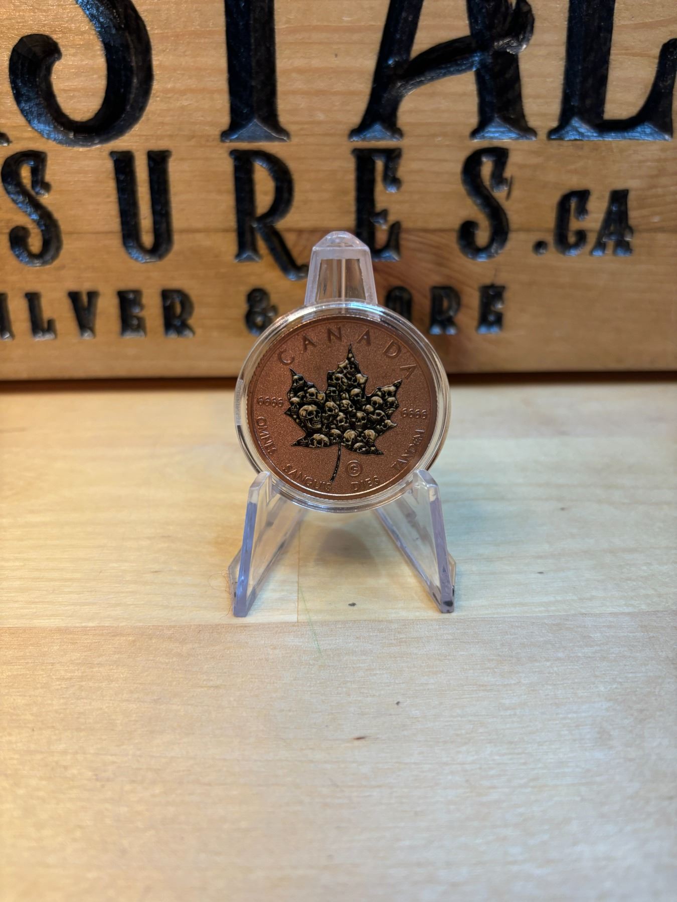 A 1/2 oz Canadian Maple Leaf Copper Round is a collectible copper round weighing 1/2 ounce, featuring the iconic Canadian Maple Leaf design. The maple leaf, a symbol of Canada, is beautifully depicted on the round, making it an attractive piece for collectors. While it’s made from copper rather than precious metals like silver or gold, it holds value for its artistic design and connection to Canadian heritage. These rounds are not legal tender but are popular for their aesthetic appeal and collectible nature.