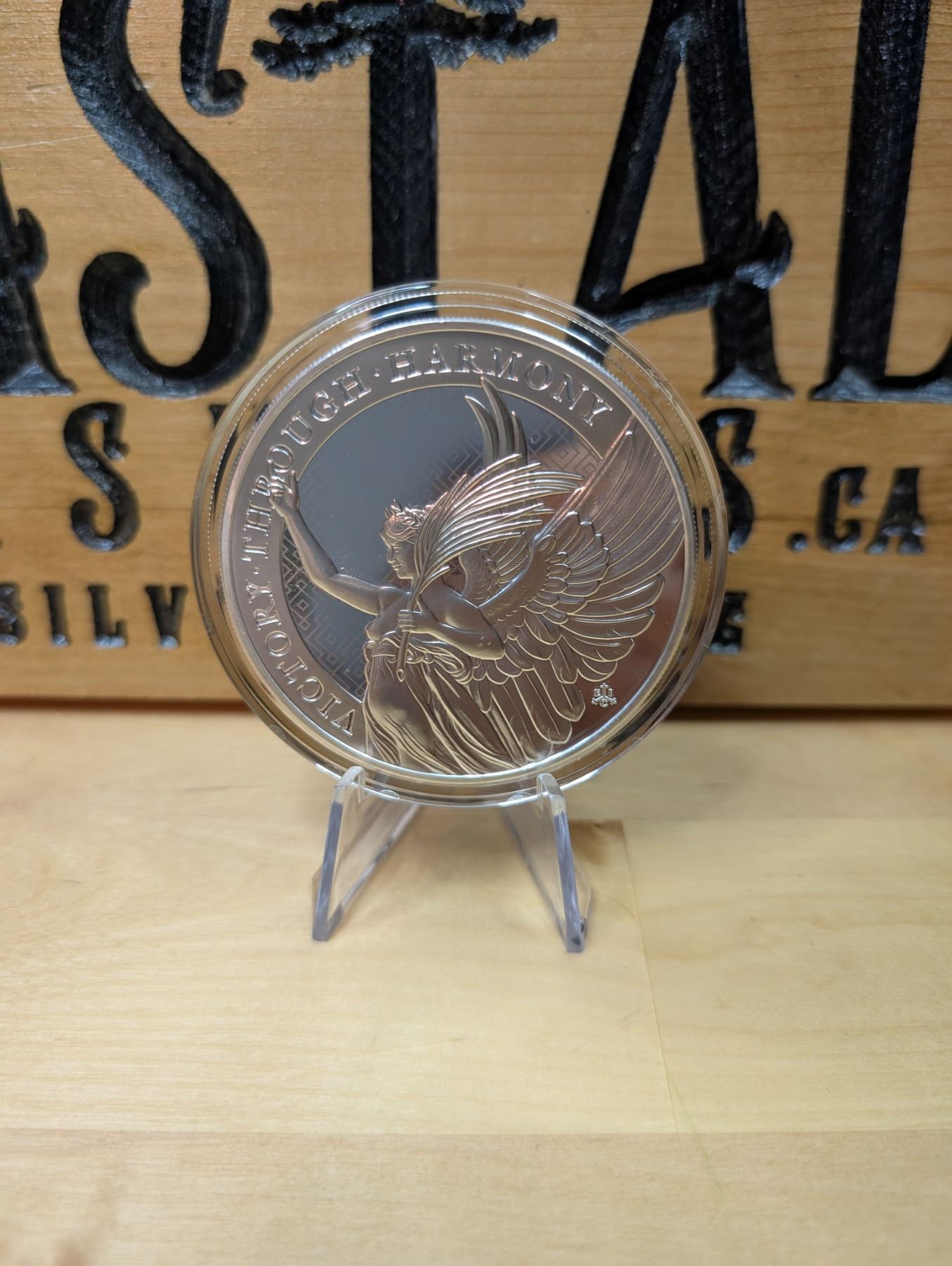 The 5oz Victory Through Harmony Silver Round is a large, 5-ounce silver round typically made of 99.9% pure silver. It features a unique design that symbolizes victory through harmony, often depicted with elements of peace or unity. This round is popular among collectors and investors for its significant size, beautiful craftsmanship, and meaningful symbolism. Since it is not issued as legal tender, its value is primarily based on its silver content and collectible appeal.