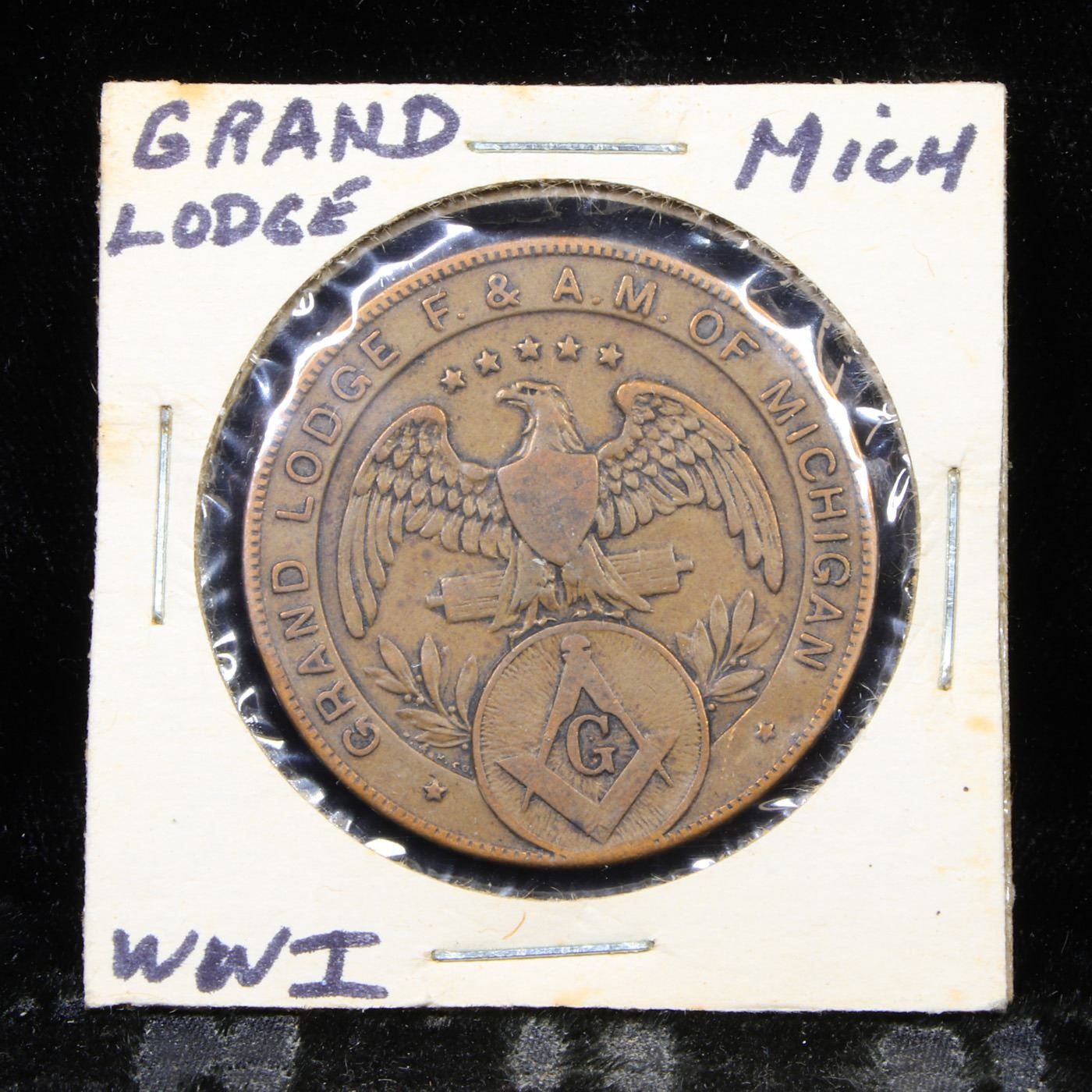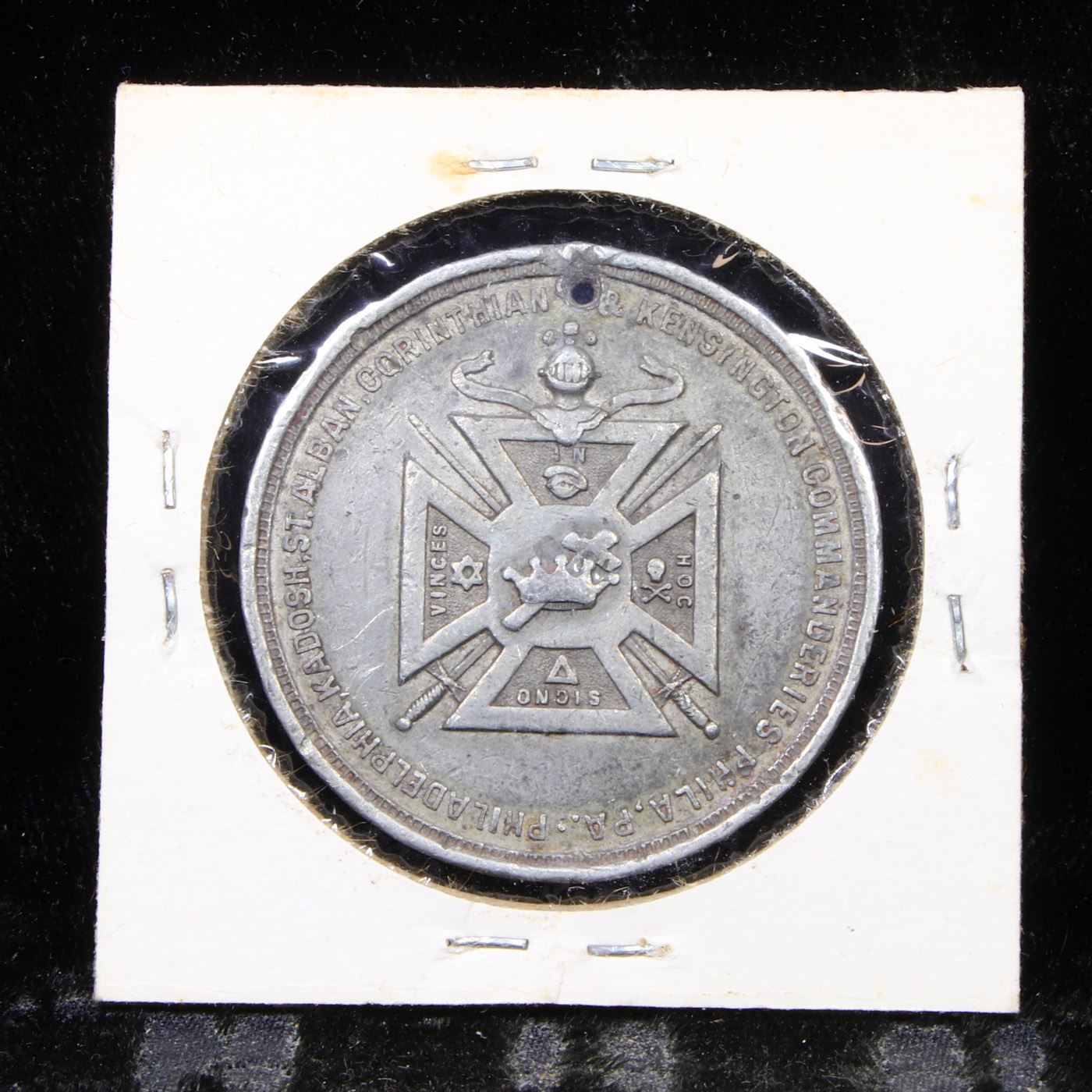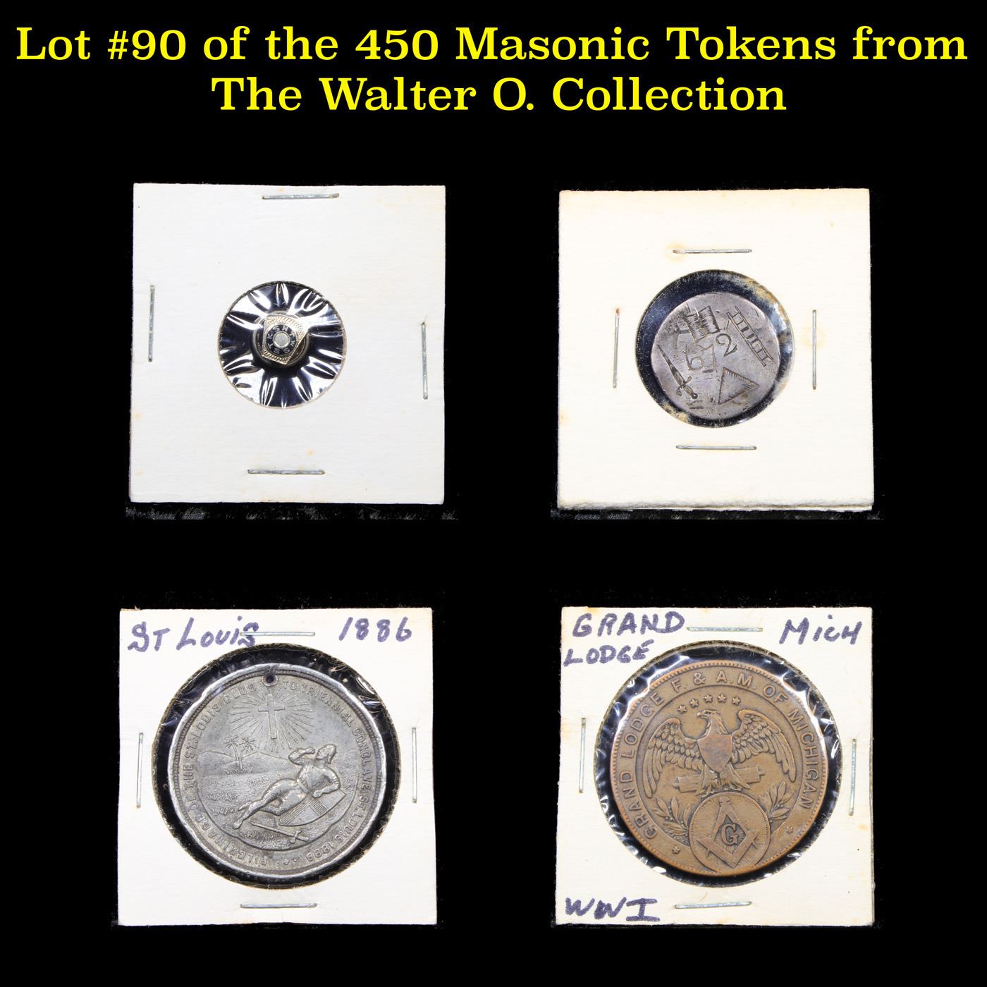 Lot #90 of the 450 Masonic Tokens from The Walter O. Collection. We Recently received a very Large Collection of 450 Masonic Tokens and coins. This collection was one man’s hobby for over 40 years. He collected each and every one with care and attention to detail and variety. Some of them are amazing and incredibly rare and highly sought by collectors and Masons. Here is a Brief Overview : Masonic coins often raise many questions for those looking to better understand the significance of the coins themselves as well as the symbolism represented in their imagery. In fraternal culture as a whole, symbolism has always been a significant part of these organizations’ identity, especially in Freemasonry, as Masonic coins are rich with symbolism, reflecting different events and characteristics of Freemasonry that give them the priceless value they hold. There are several varieties of masonic coins and tokens, and all tokens will fall into one of the following categories: a token celebrating a particular mason, lodge or event; an initiation token showing when a Brother was initiated, passed and raised; and finally the mark mason token (or penny) which signifies a pivotal part of a Mason’s initiation. Because symbolism was so important to fraternal culture, these small coins are rife with meaning. The most ubiquitous representation of the Masons was the letter "G" surrounded by a compass and square, representing the holy geometry of God. Some tokens feature the letters "H.T.W.S.S.T.K.S.," which means "Hiram the Widow's Son Sent to King Solomon," the biblical story that must be acted out to reach the third, or Master's Degree, in Freemasonry. Additionally, many contain either Apron and gloves: These symbols stand for living with a pure heart and to keep one’s hands clean. All-seeing eye: This symbol is designed to remind Masons that God and others always see their thoughts and actions. Ashlars: You may see rough and smooth ashlars on Masonic coins. They are to remind Masons of the contrast between man’s natural state and perfection and the Level: This symbol found on some Masonic coins reminds Masons that everyone is equal before God. We have broken the set up into groups of 5 Tokens in each lot. We have put 5 Lots per night over the 18 Nights of the Spring Auctions.