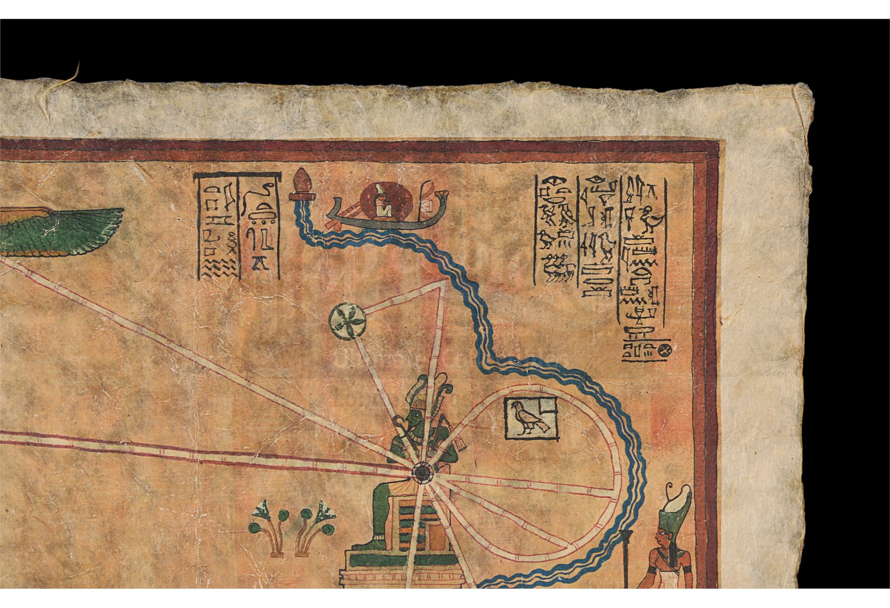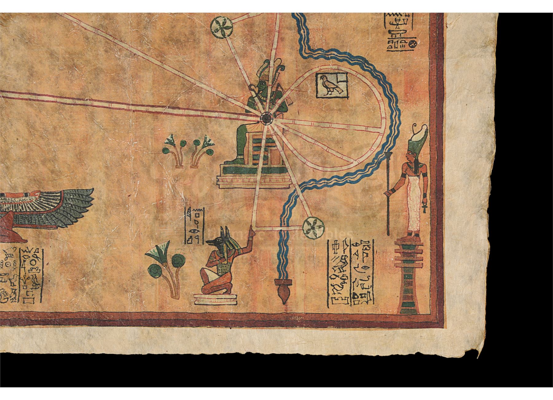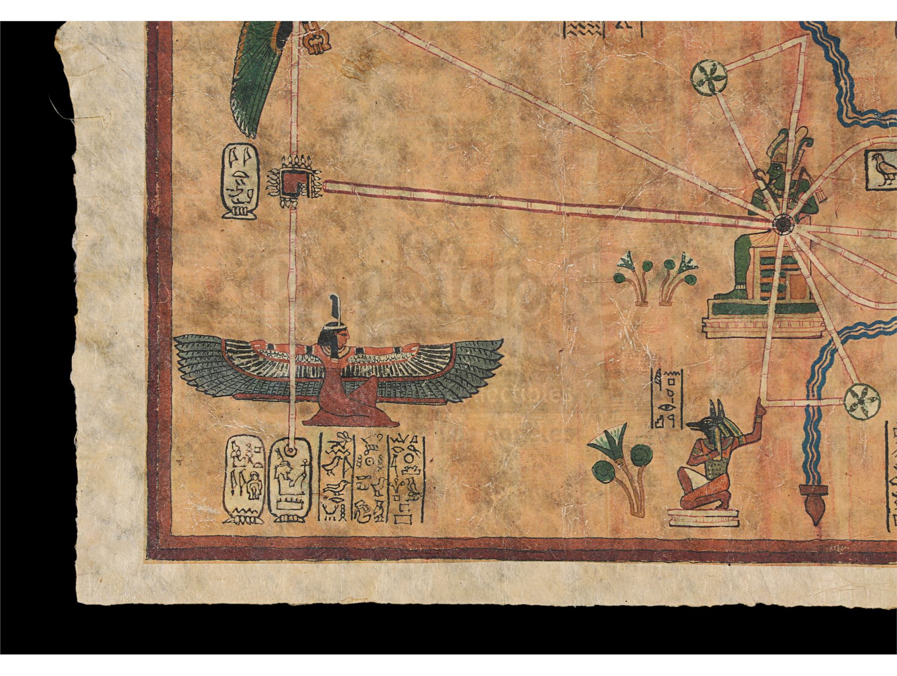 This lot will be auctioned on Thursday, July 1st. The auction will begin at 9:00am PDT and lots are sold sequentially via live auctioneer; tune in to the live streaming broadcast on auction day to follow the pace. Note other lots in the auction may close on June 29th or June 30th. A map of Hamunaptra from Stephen Sommers' fantasy adventure The Mummy. Evelyn (Rachel Weisz) and Jonathan (John Hannah) found the map to Hamunaptra, the lost "City of the Dead," inside the Book of the Dead key. The map was burned when the Medjai attacked their riverboat. The map is printed on thin paper stained to mimic the look of ancient papyrus. Intentionally distressed for the production, it remains in good overall condition, with some light creasing and fading to some parts. Dimensions: 11.75" x 16.75" (30 cm x 42.5 cm) Estimate: $600 - 800