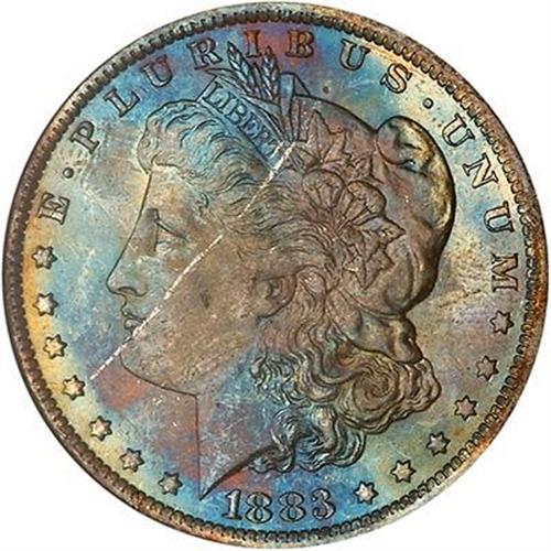 1883-O Morgan Dollar. Beautiful color, although there is a silvery line through the toning (that is not a scratch, fortunately), offsetting the balance somewhat, but only a trifle. (#7146)