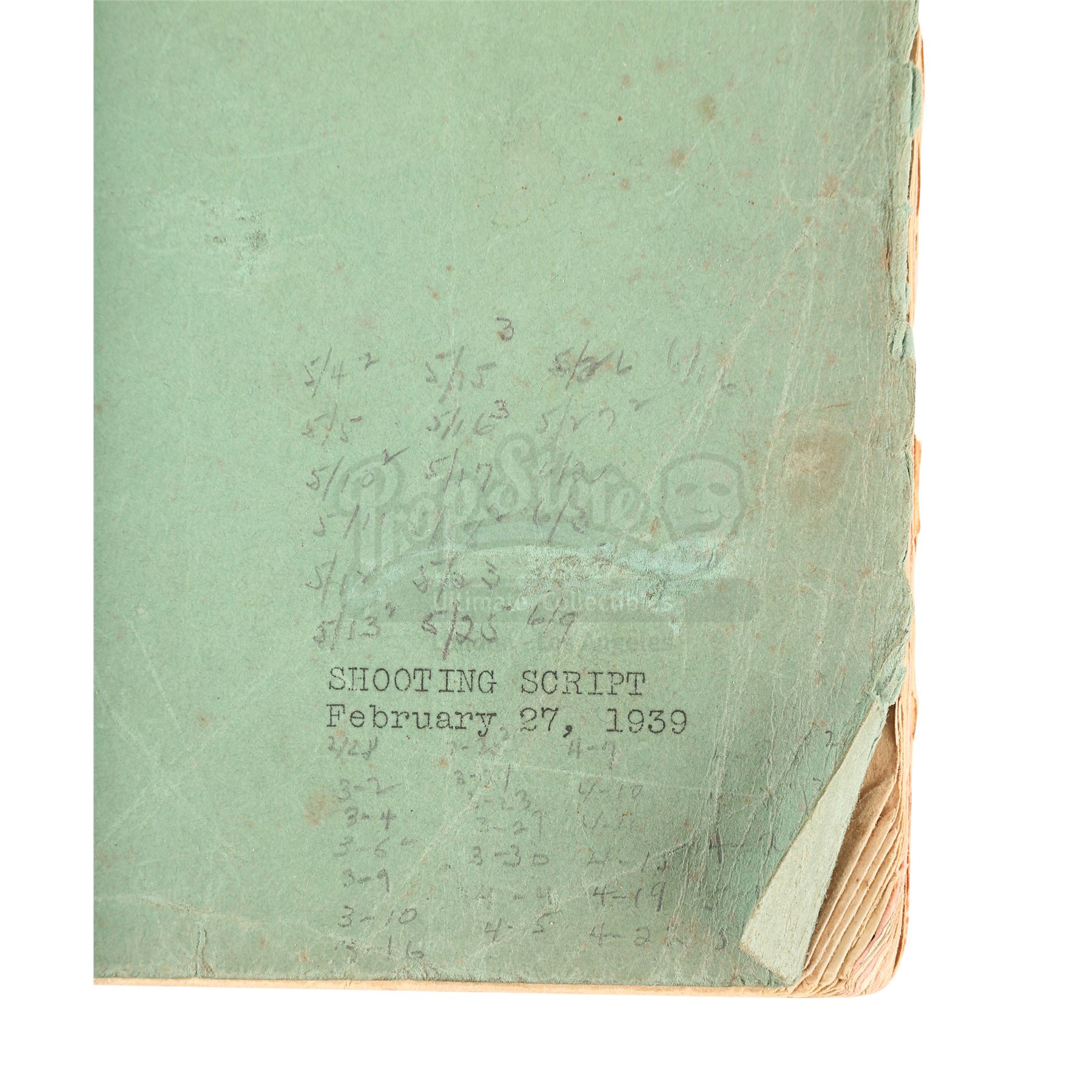 This lot will be auctioned on Tuesday, June 29th. The auction will begin at 9:00am PDT and lots are sold sequentially via live auctioneer; tune in to the live streaming broadcast on auction day to follow the pace. Note other lots in the auction may close on June 30th or July 1st. A production-used script from Victor Fleming's historical epic Gone with the Wind. This shooting script, credited to Sidney Howard, is dated "February 27, 1939" and is 276 pages long. It is bound in a green card cover with two brass fasteners, with assorted colored pages indicating multiple revisions. The cover has numbers handwritten in pencil in the bottom right corner, and the first page has an arrow drawn in pen above the dialogue. The script displays wear from production use and age, including creasing, staining, small tears and scuffs and scratches to the cover. The back cover has torn away from the bottom fastener and is slightly loose. Considering the age of the script, it remains in excellent overall condition. Dimensions: 11" x 8.75" x 1.25" (28 cm x 22 cm x 3 cm) Estimate: $3,000 - 5,000
