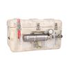 This cream plastic cool box, originally a US Navy shipping and storage container, comprises an interior metal grill and frame; an empty metal gas cylinder and pressure gauge, which are attached to the front; a metal plaque that reads "Property of the U.S. Navy" affixed the right side; six blood bags filled with stage blood; and a light-up device with green and red lights, which flash when activated by the switch on its base. The lid displays red "Hillburn Clinic" and "Front" decals, and is secured by eight latch locks. It is accompanied by a letter of authenticity from the productions 1st assistant prop master, Al Eisenmann II. The box exhibits dirt marks, discolourations and rust from production use and age. Dimensions: 49 cm x 59 cm x 37 cm (19 1/4" x 23 1/4" x 14 1/2")