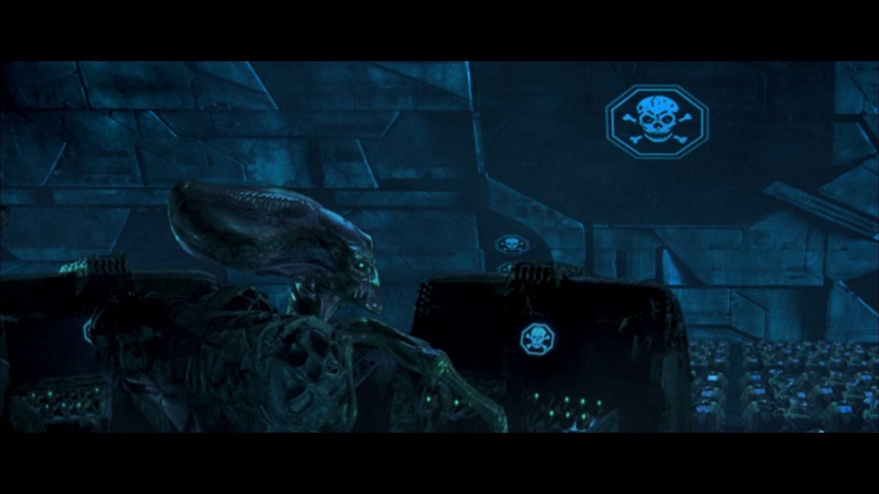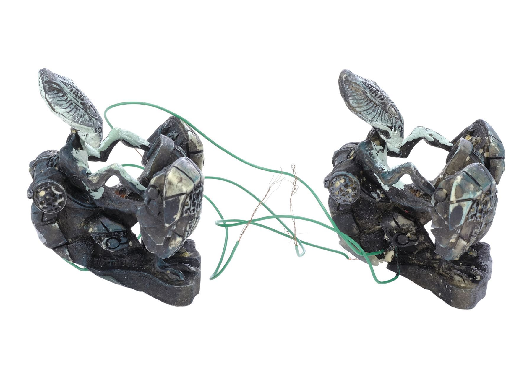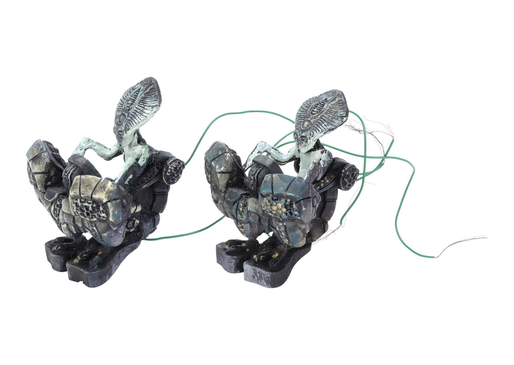 INDEPENDENCE DAY (1996) - Two Console-Bound Harvester Model Miniatures - Two console-bound Harvester model miniatures from Roland Emmerich's sci-fi action film Independence Day. Captain Steven Hiller (Will Smith) and David Levinson (Jeff Goldblum) saw Harvester aliens at computer consoles when they flew into the Harvesters' Mothership.