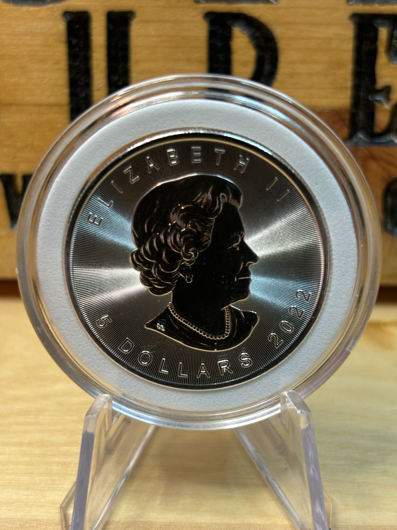 The 2022 1 oz Canadian Silver Maple Leaf is a .9999 fine silver coin featuring King Charles III on the obverse and the iconic maple leaf on the reverse. With advanced security features and MINTSHIELD™ protection, it’s perfect for collectors and investors.
