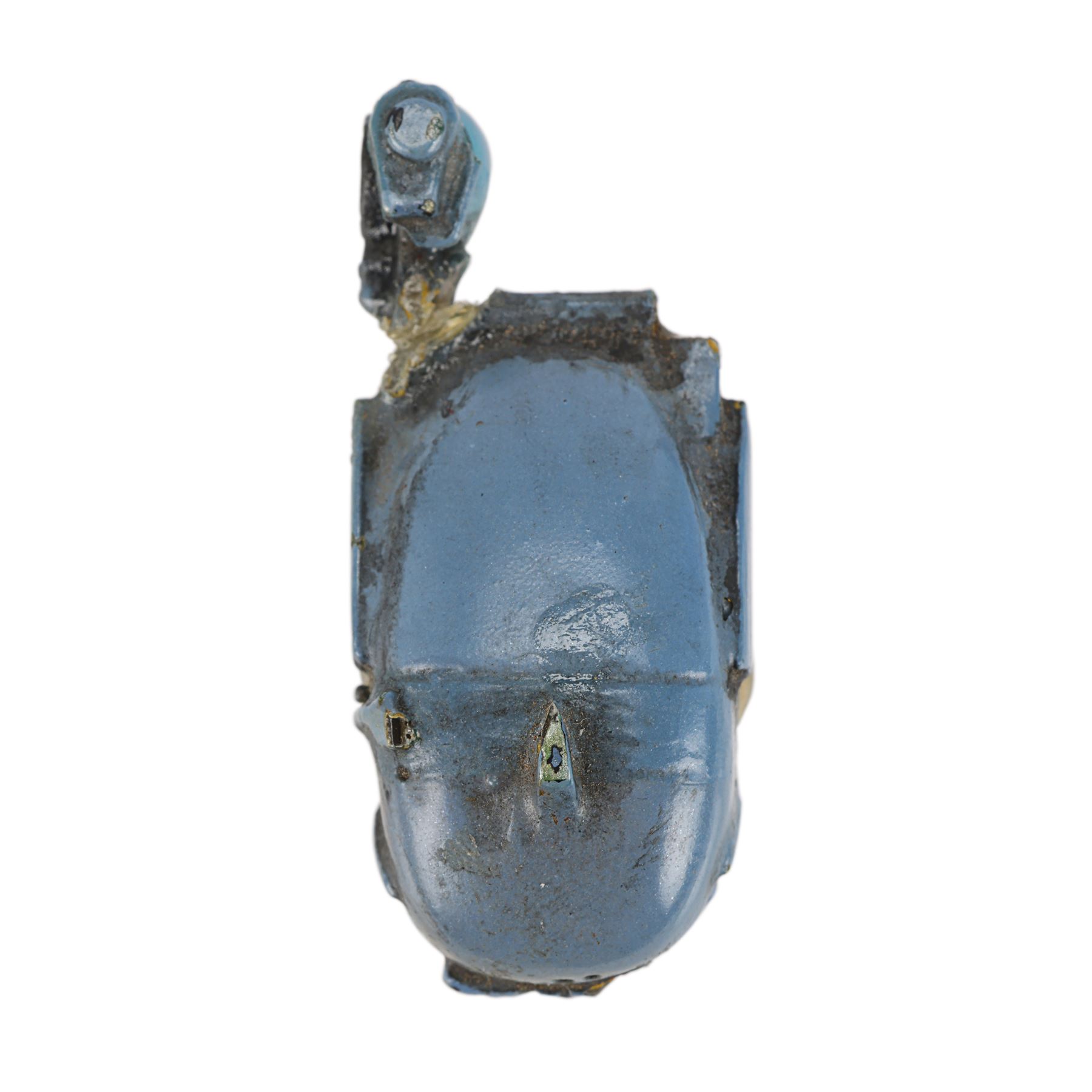 Miniatures were made for the film at several scales. This small-scale version features a roof fin, side panels and a front left wheel arm, the right arm being absent. Glue residue on its base. The lot exhibits signs of wear commensurate with its age and production use, including the missing wheel arm. Dimensions: 3 cm x 1.5 cm x 1 cm (1 1/4" x 1/2" x 1/4")