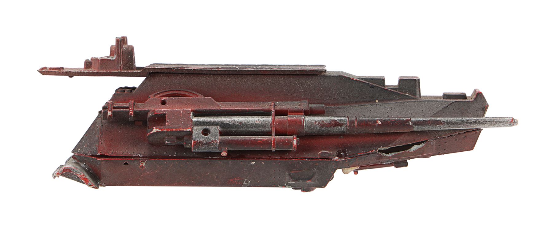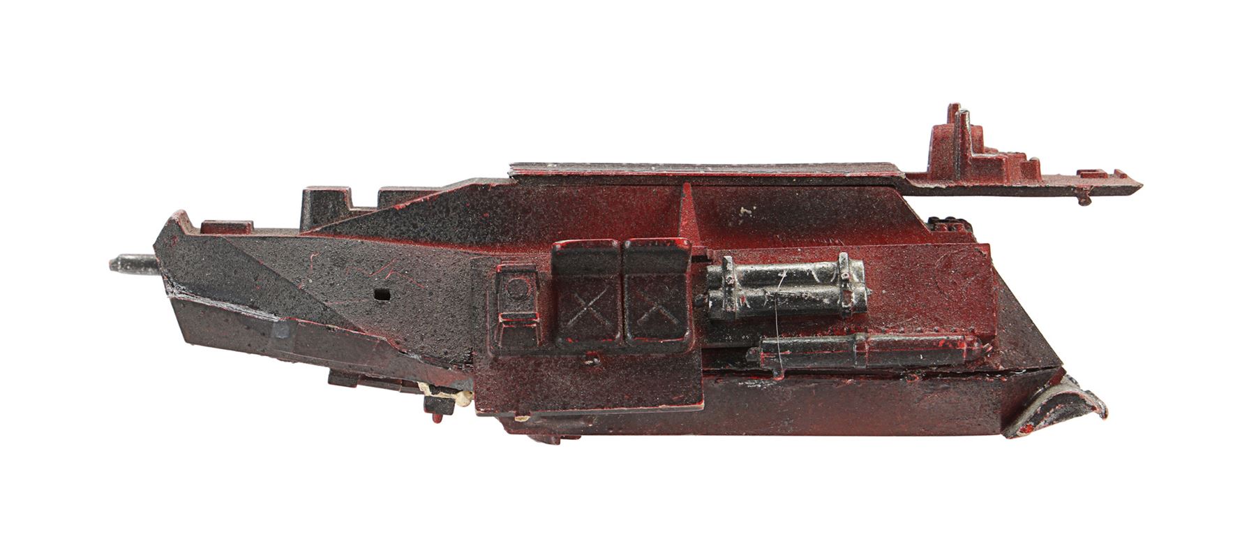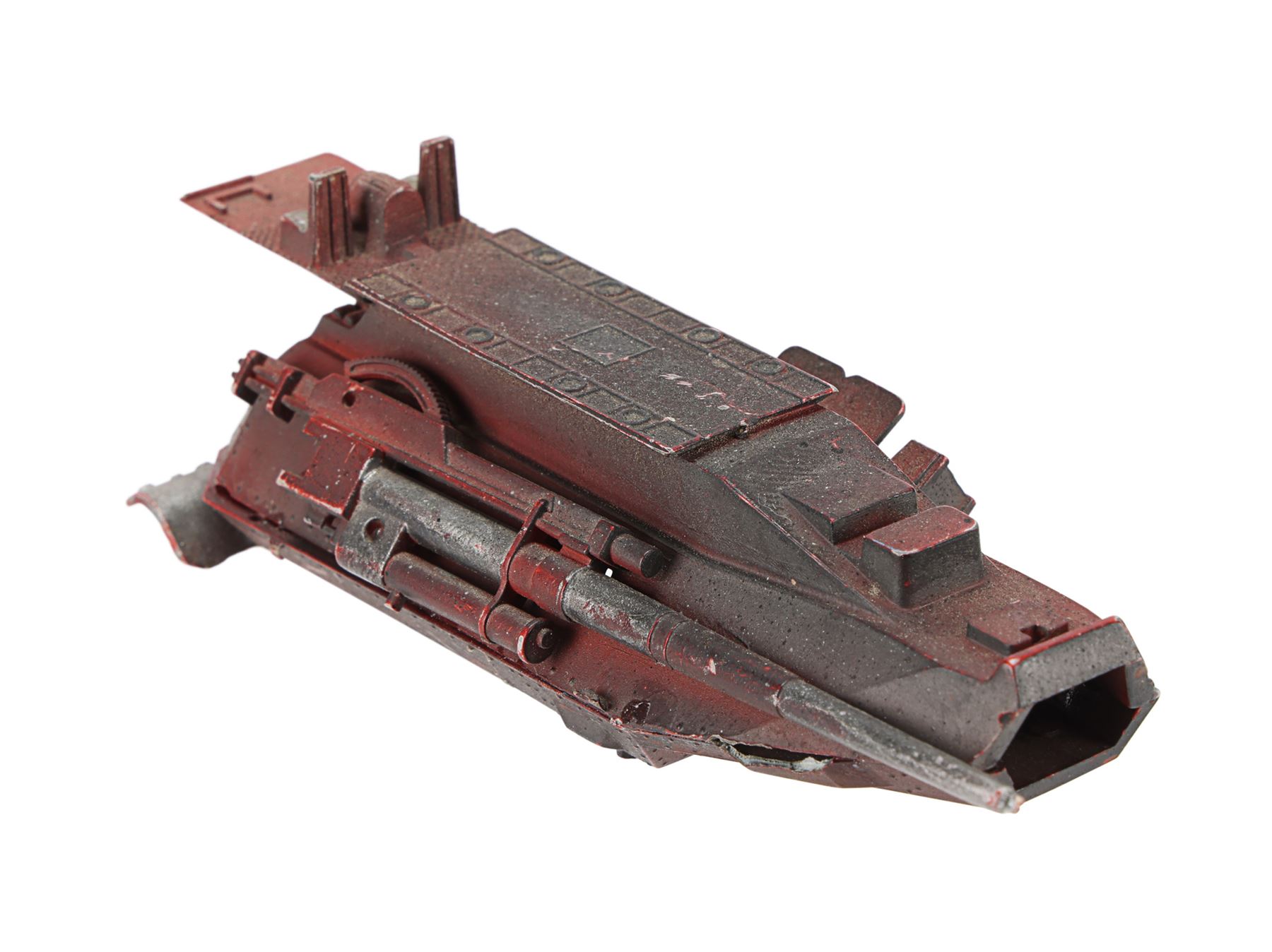 A red street vehicle miniature from the production of Ridley Scott's sci-fi classic Blade Runner. The film featured two types of flying vehicle - police spinners and private vehicles - and this is a model miniature of the latter. This lot comes from the family of Blade Runner archivist Geoff Hutchins.