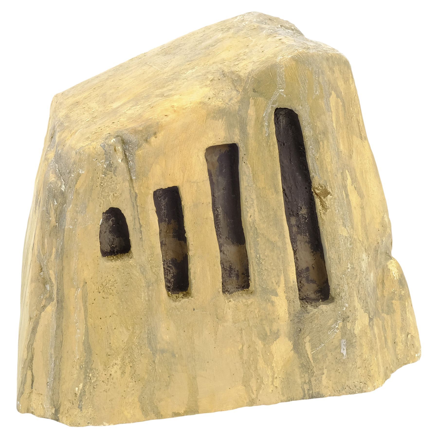 Created by Matte World Digital, these resin and foam miniatures are hand-painted brown and yellow and textured to resemble stone. The set exhibits cracking and chipping from use, age, and conveyance. Dimensions: (largest) 12" x 26" x 20" (30.5 cm x 66 cm x 51 cm)
