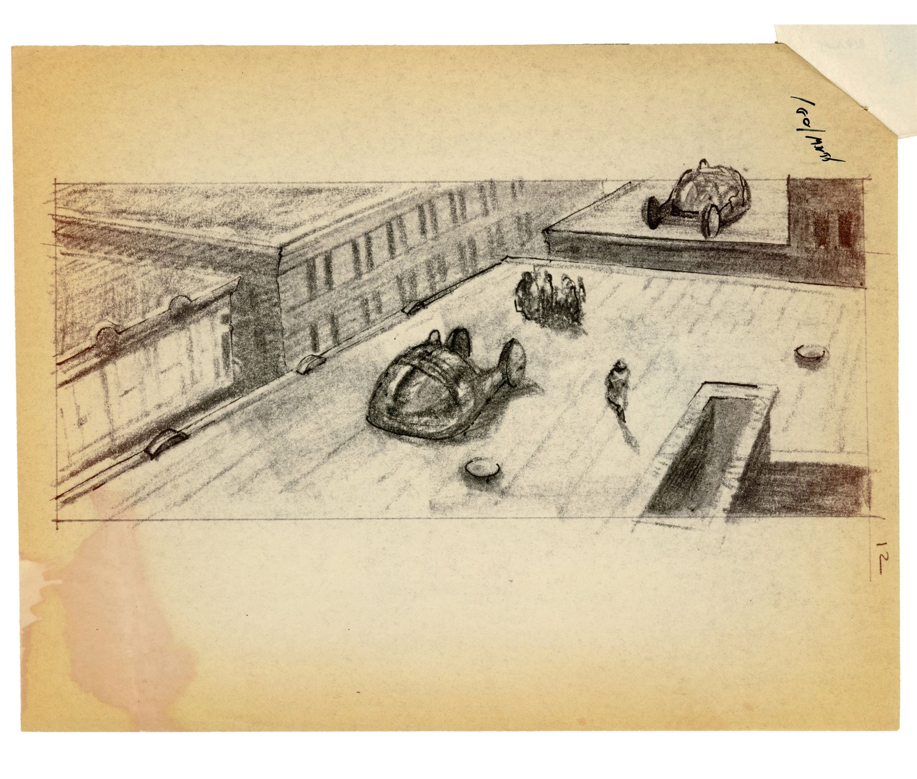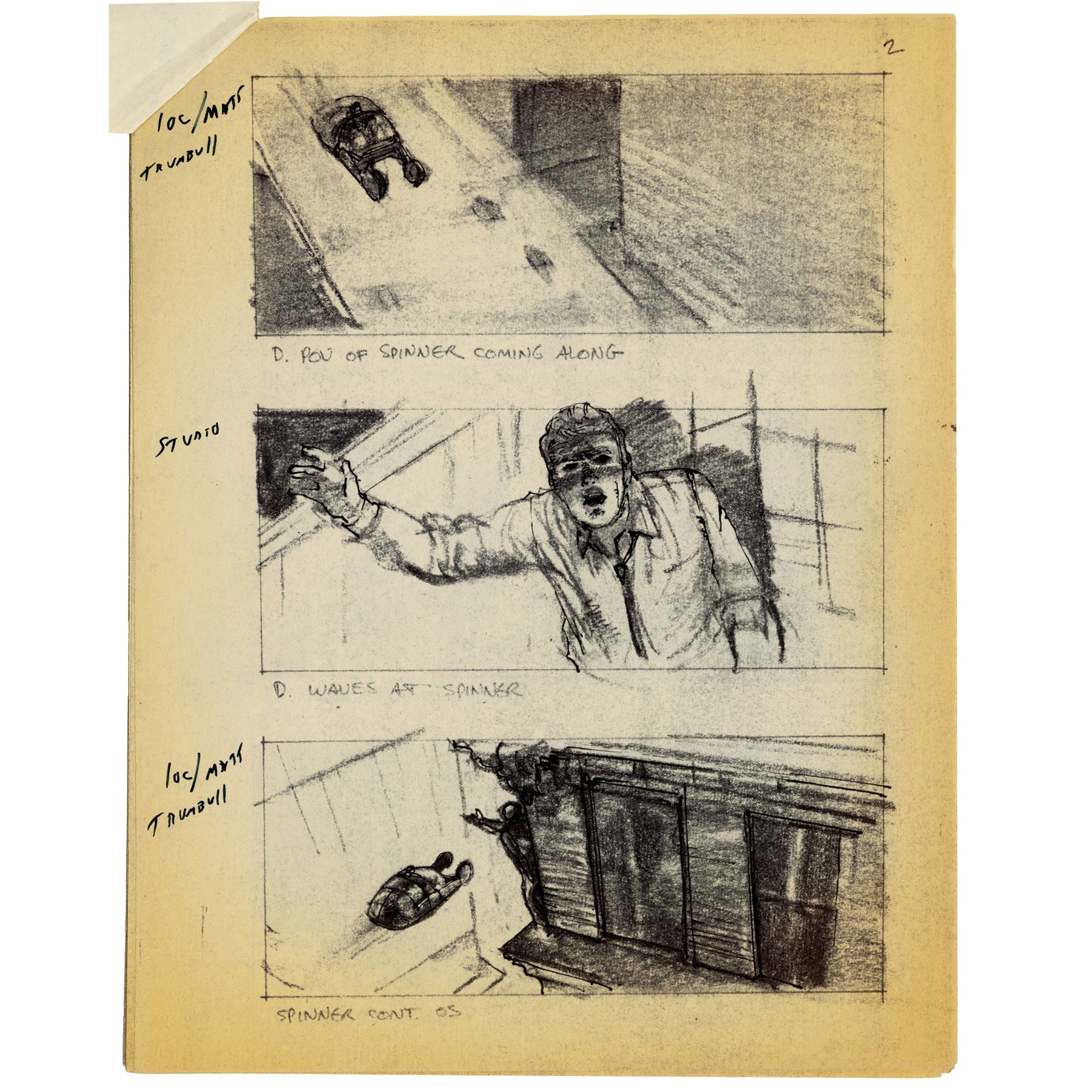 A printed storyboard packet from the production of Ridley Scott's Blade Runner. Scott worked with artist Sherman Labby to create extensive storyboards for the film.