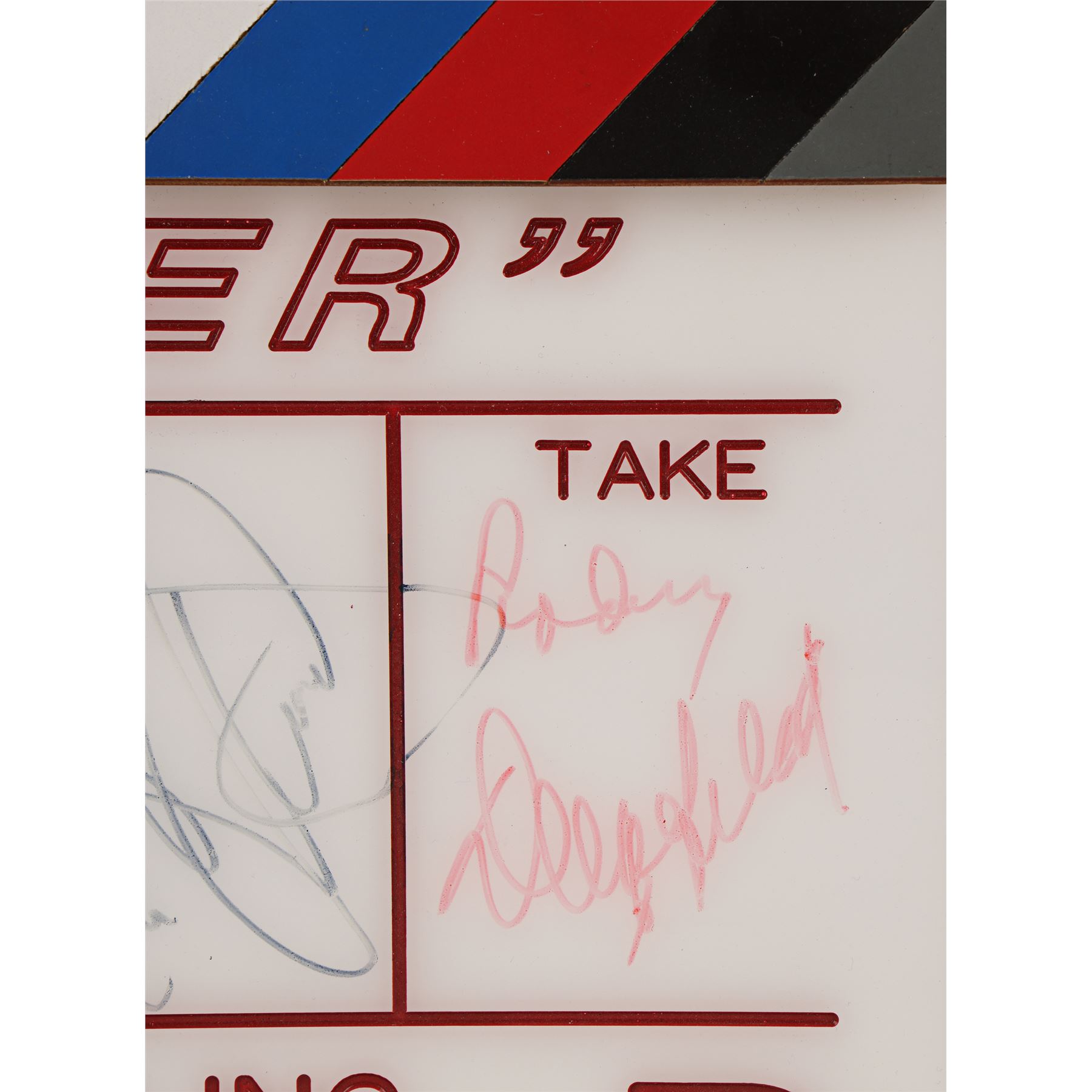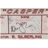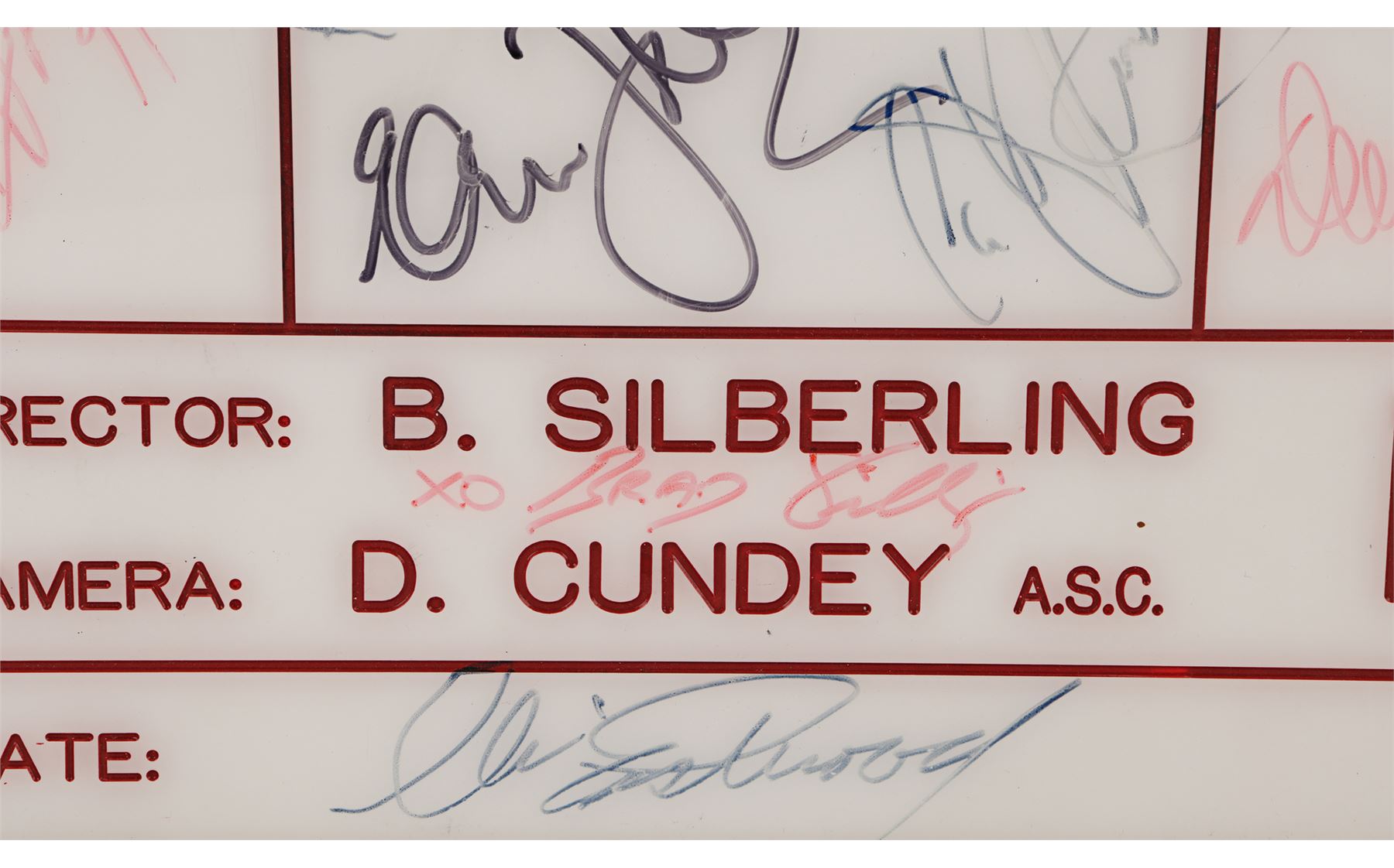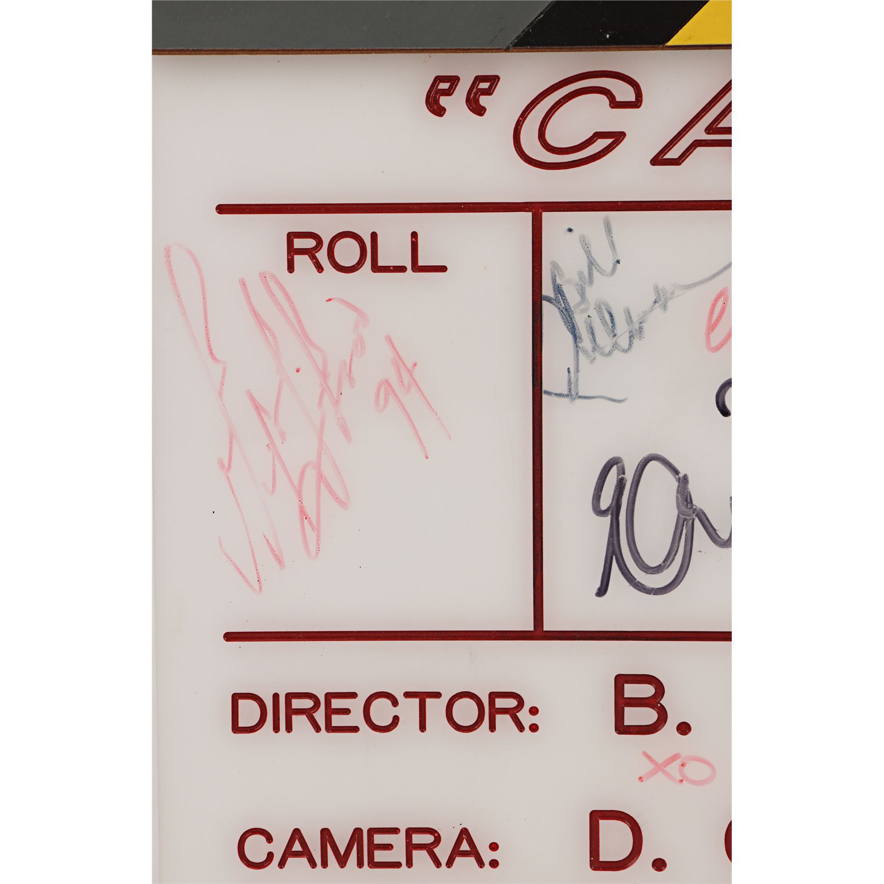 A clapperboard autographed by members of the cast from Brad Silberling's family comedy Casper. The autographs are handwritten on the clapperboard's acrylic slate and vary in colour, ranging between red, black, and blue. The included autographs are the director's as well as cast members Clint Eastwood, Bill Pullman, Christina Ricci, Dan Aykroyd, Eric Idle, and Rodney Dangerfield.