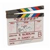 Engraved into the slate are the film's title and the names of the director and director of photography Dean Cundey. The clapperboard's sticks are made of wood, with colourful arrows running from left to right. Dimensions: 28.1 cm x 24.1 cm x 2.3 cm (11" x 9 1/2" x 1")