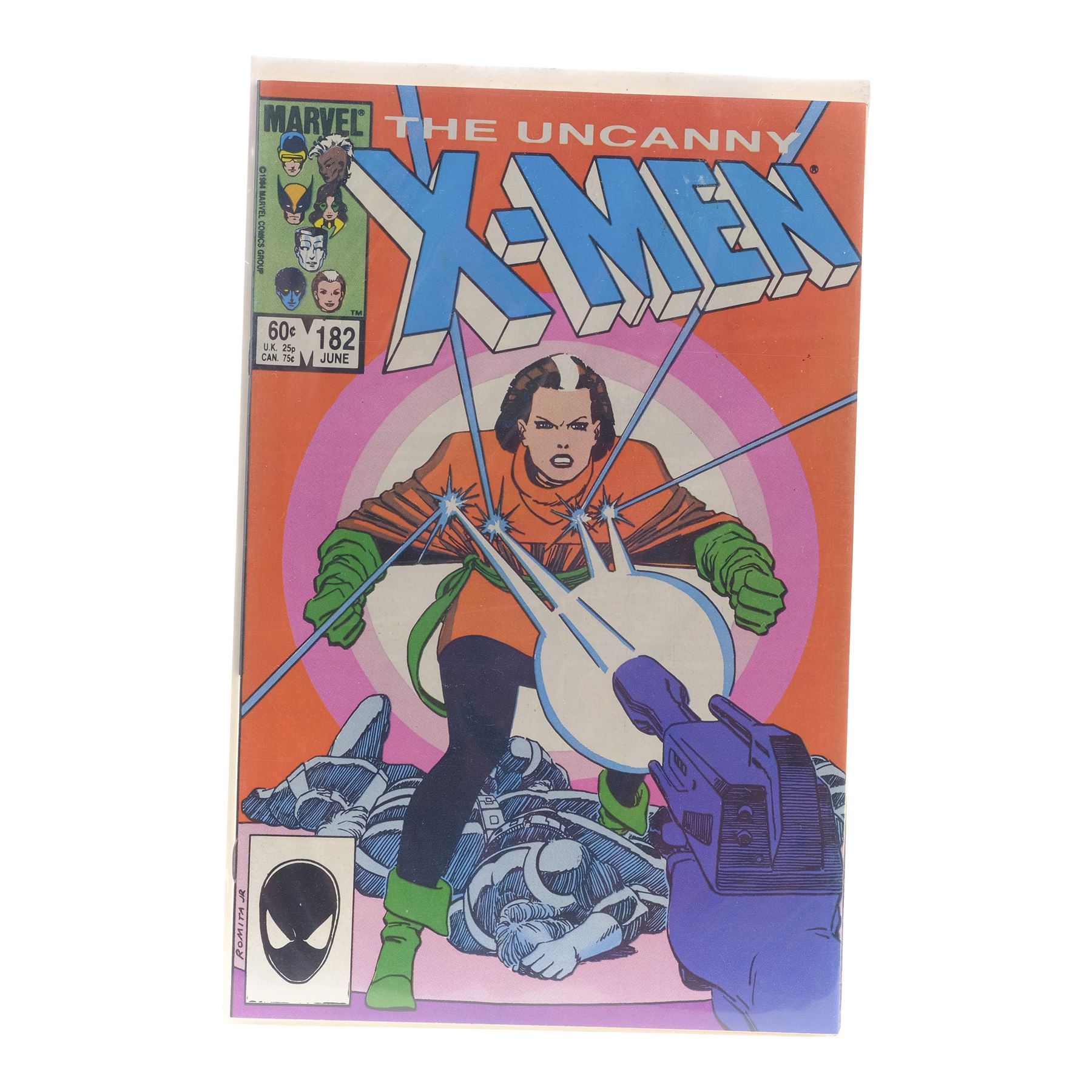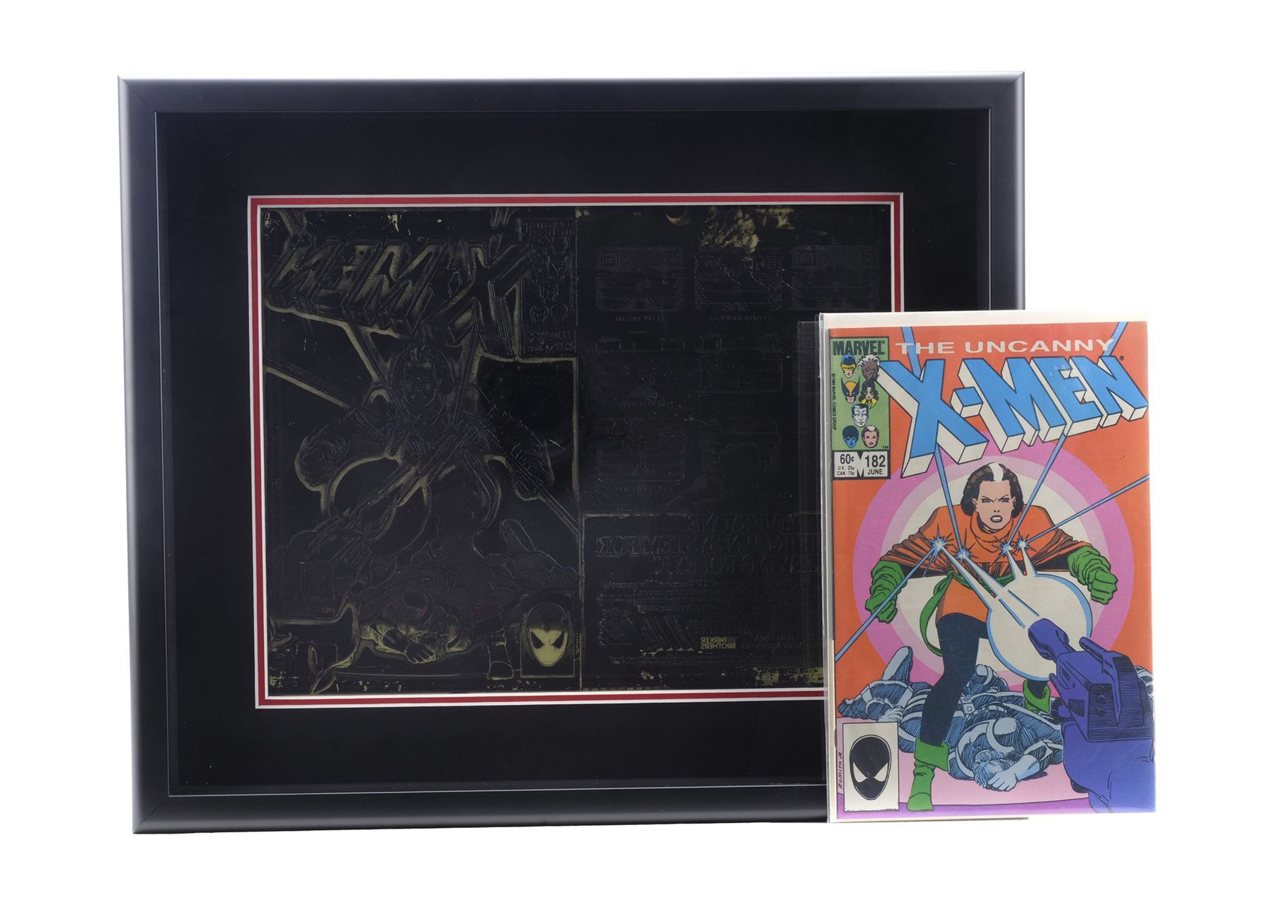 MARVEL COMICS - Framed Uncanny X-Men No. 182 Cover Printing Plate with Comic Book - A framed printing plate for the cover of Uncanny X-Men issue 182 published by Marvel Comics in June 1984 with a copy of the issue. Known for having one of the highest print circulations of any comic book of the era, the issue was written by Chris Claremont with pencils and cover art by John Romita, Jr., inks by Dan Green, and colors by Glynis Wein.