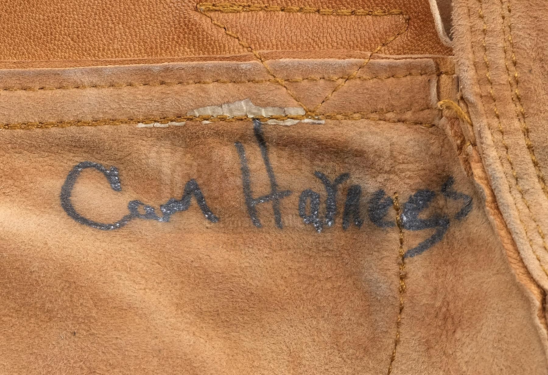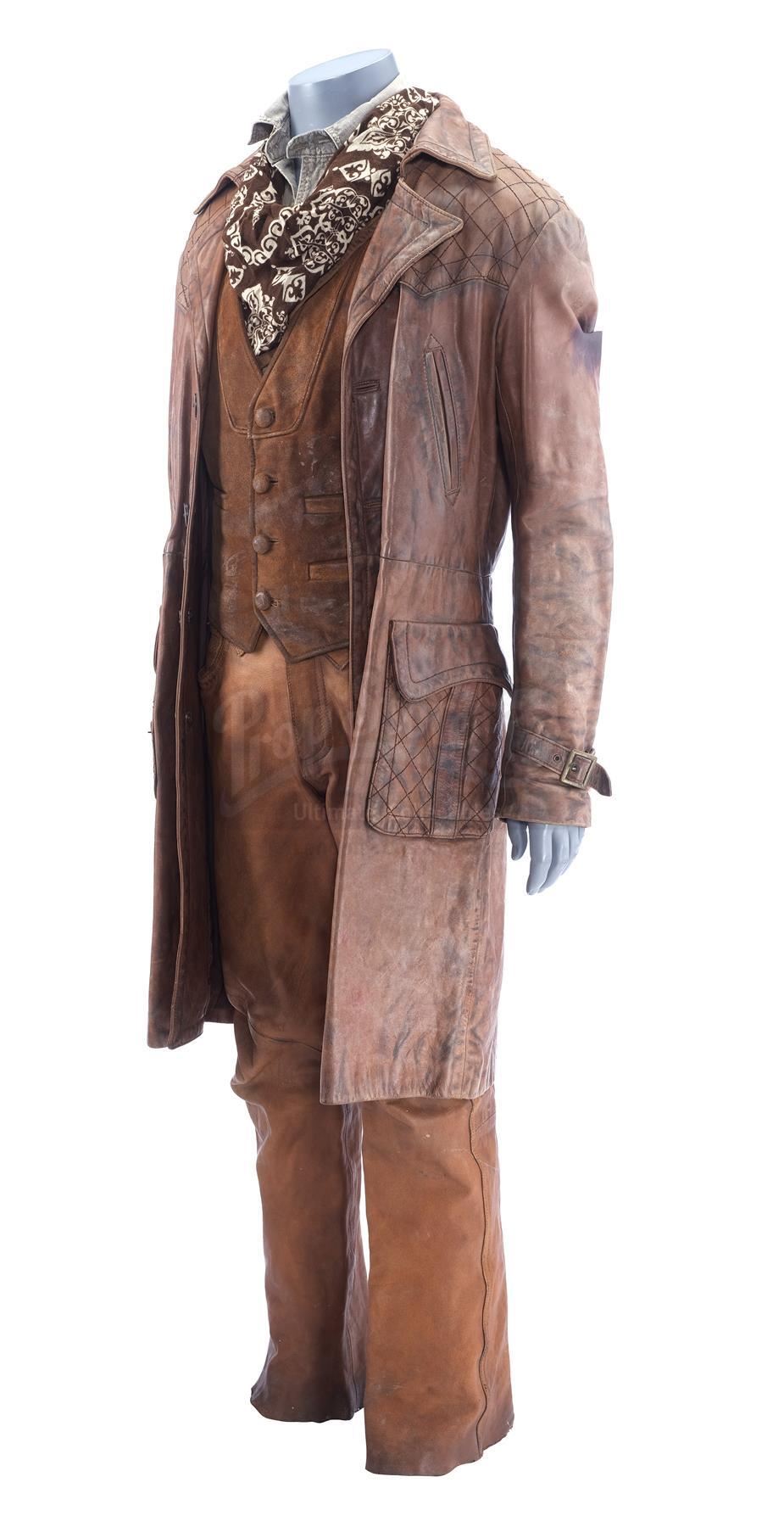 This lot will be auctioned on Thursday, July 1st. The auction will begin at 9:00am PDT and lots are sold sequentially via live auctioneer; tune in to the live streaming broadcast on auction day to follow the pace. Note other lots in the auction may close on June 29th or June 30th. Hick's (Cam Gigandet) bloodied costume from Scott Stewart's horror thriller Priest. Sheriff Hicks wore his costume while helping Priest (Paul Bettany) track down his niece (Lily Collins), who was kidnapped by vampires. This blood-stained and production-sliced costume consists of a leather button-up knee-length jacket with wrist straps marked "STAGE 4" on the interior; a cotton-backed, silk-lined suede button-up vest marked "STAGE 4"; a gray cotton collared shirt; a leather-lined brown cotton handkerchief; and brown leather pants marked "STAGE 4". The costume is in good overall condition with extensive distressing, tears, and holes made throughout by production. Estimate: $1,500 - 2,500