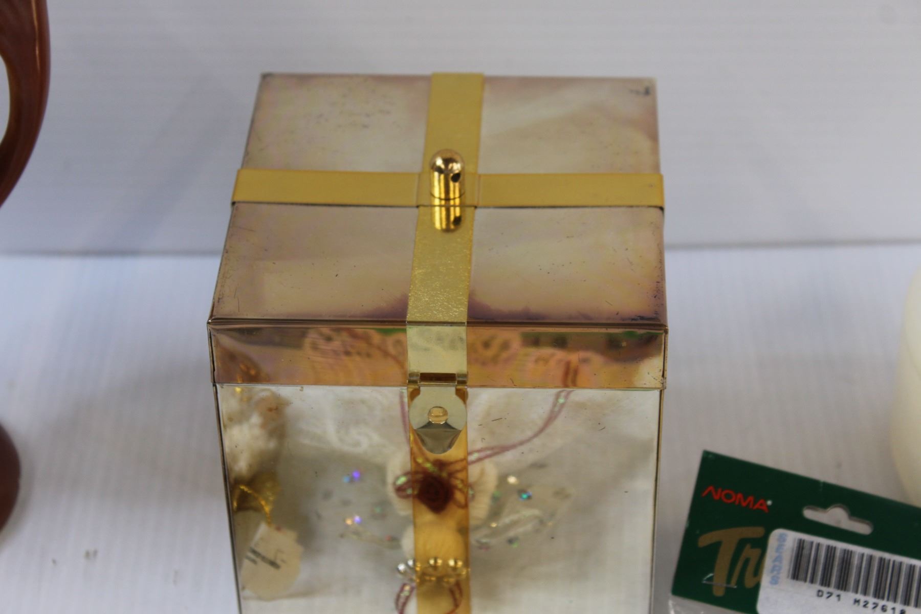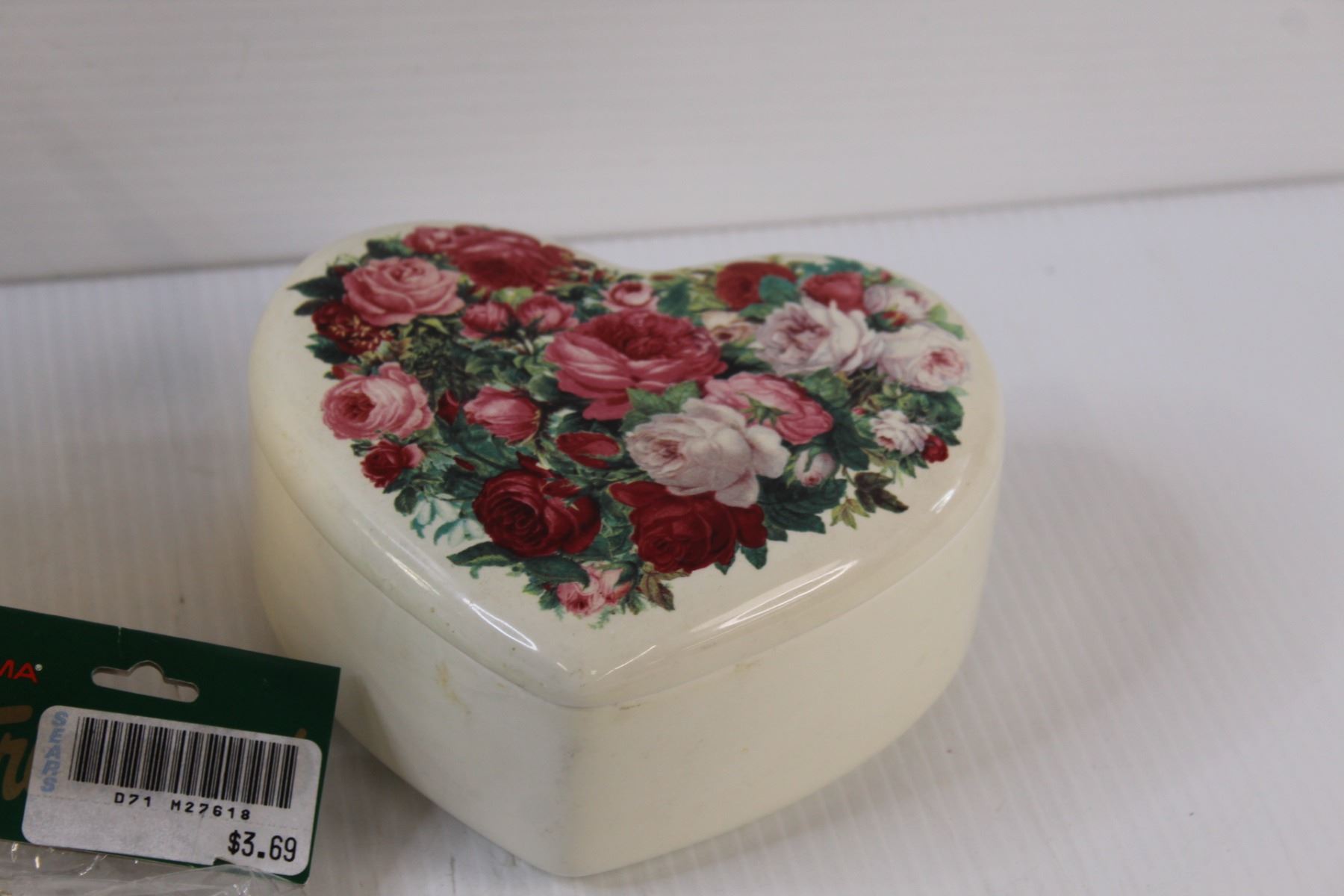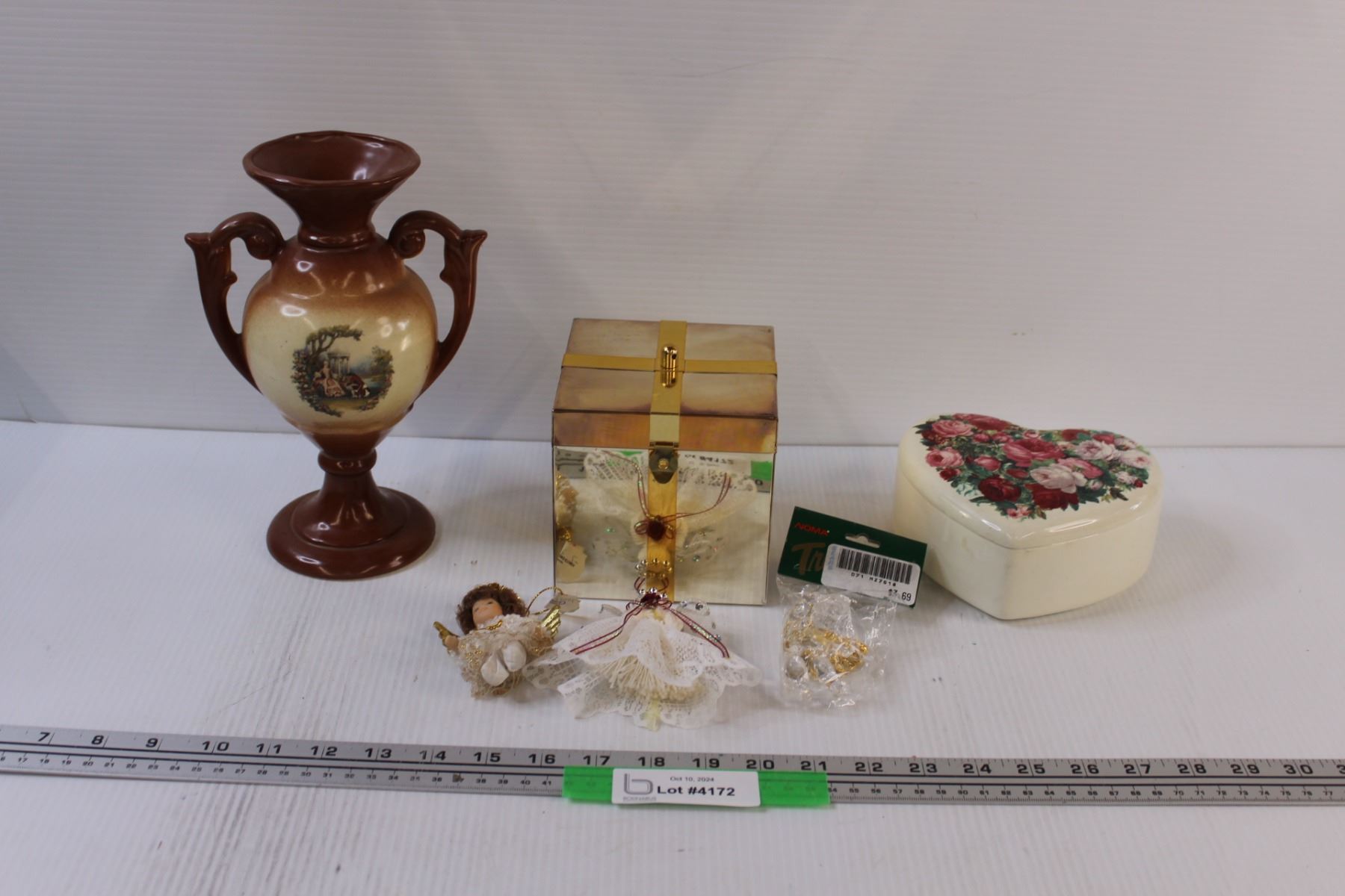 Lot: Angel Decor in Metal Present Box, Ceramic Heart Storage, English Style Vase