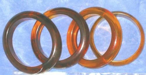 Lot of 4 Bakelite, Apple Juice, Tortoise bangles. 3" inside diam. Beautiful condition. (22-3)