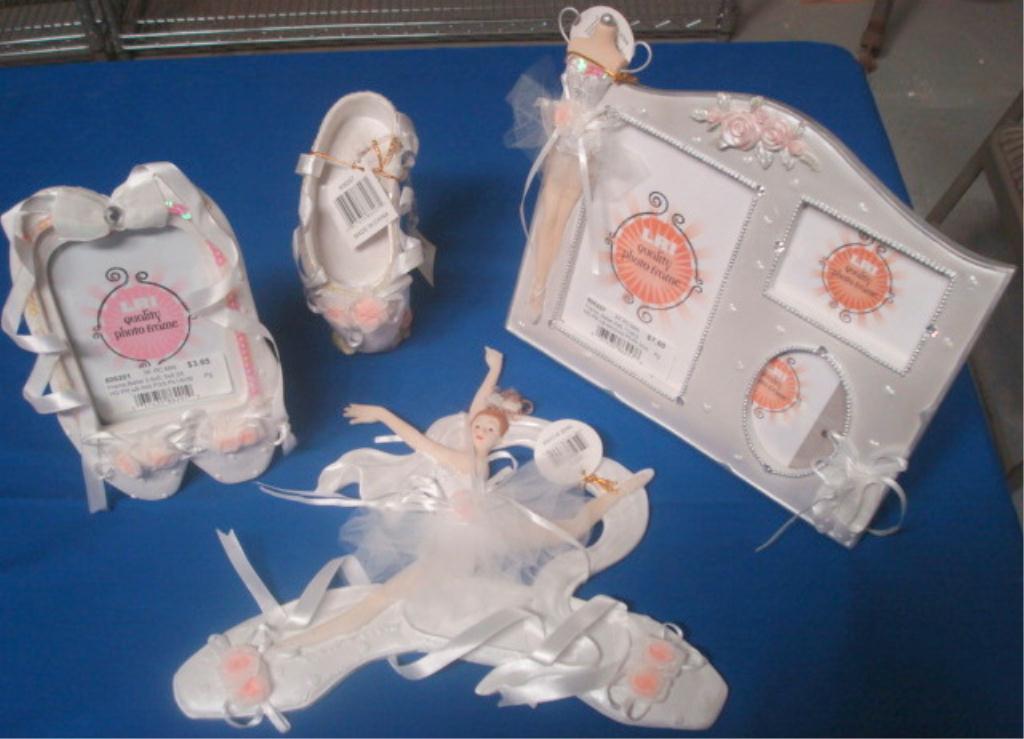 Perfect for your little Ballerina! This lot contains two picture frames, wall decor, and a figurine.