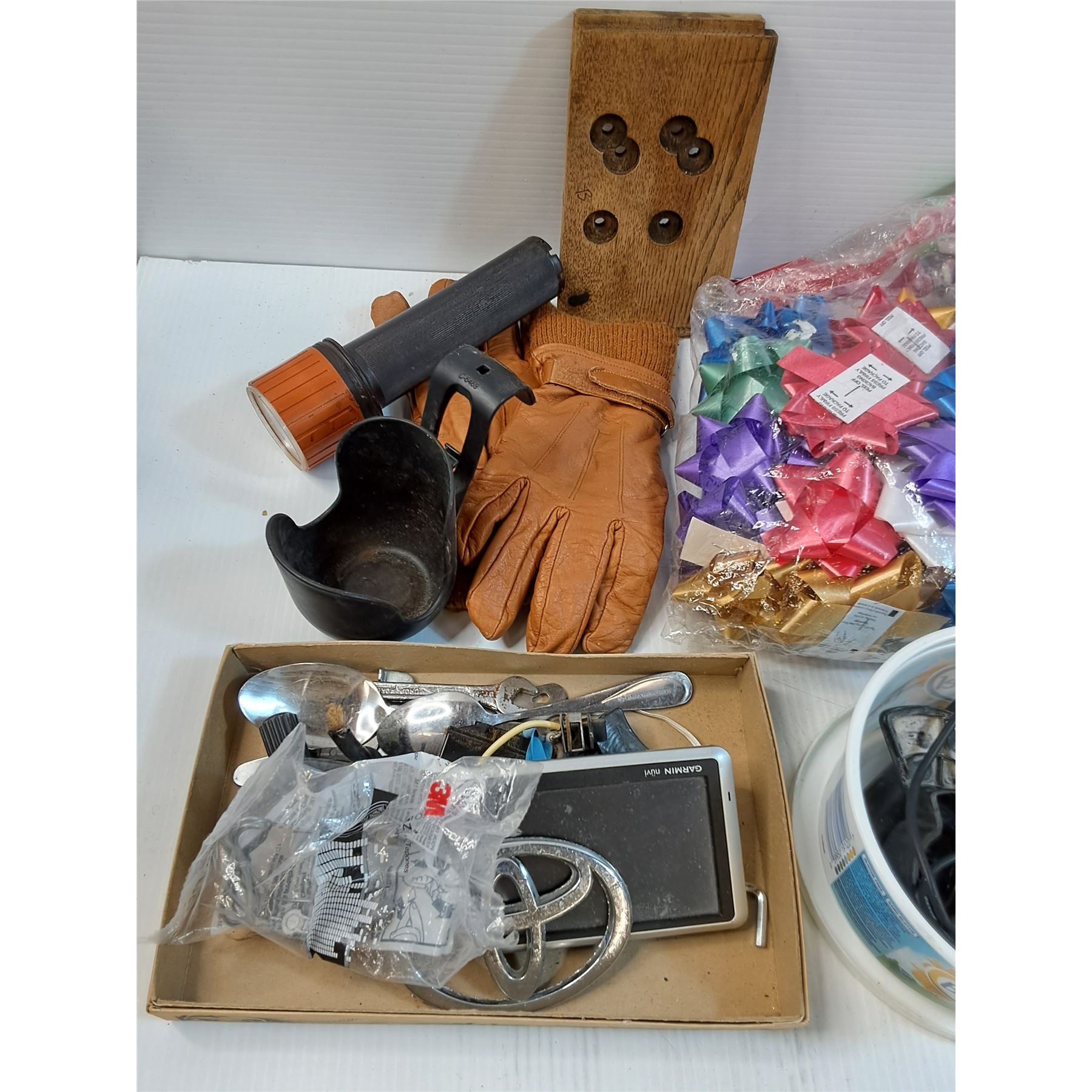 Lot: Bows, Flashlight, Womens Gloves, Christmas Lights (Works, Some Don't)