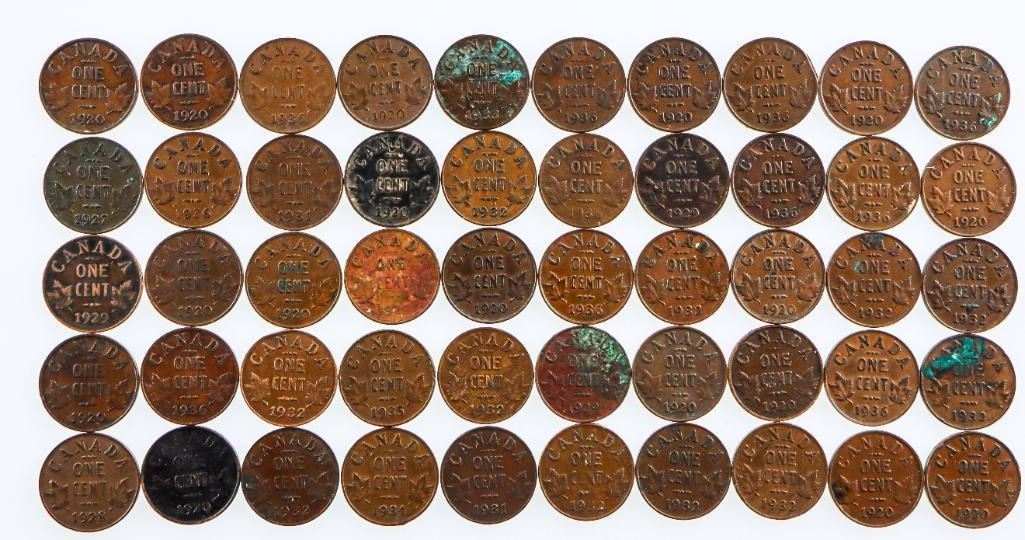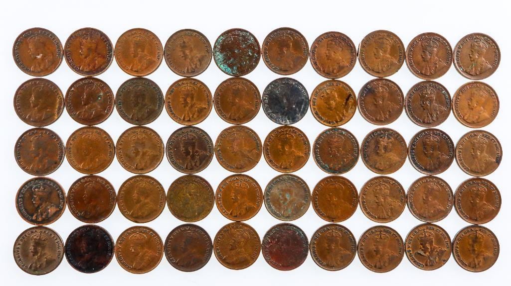 Lot - Canada 50 x King George One Cent Coins Mix of Dates