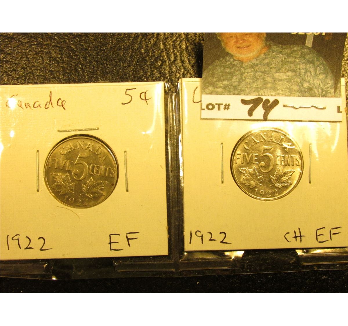Lot Canada Nickels: 1922 EF & 1922 Choice EF.