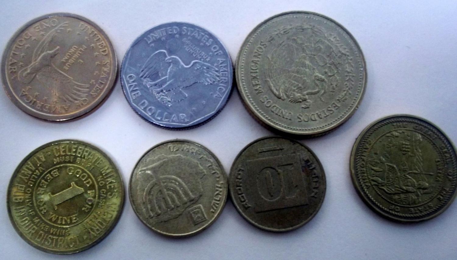 This lot includes a 1979 Susan B. Anthony, 2000 D Sacagawea, and various foreign coins and memorbelia.