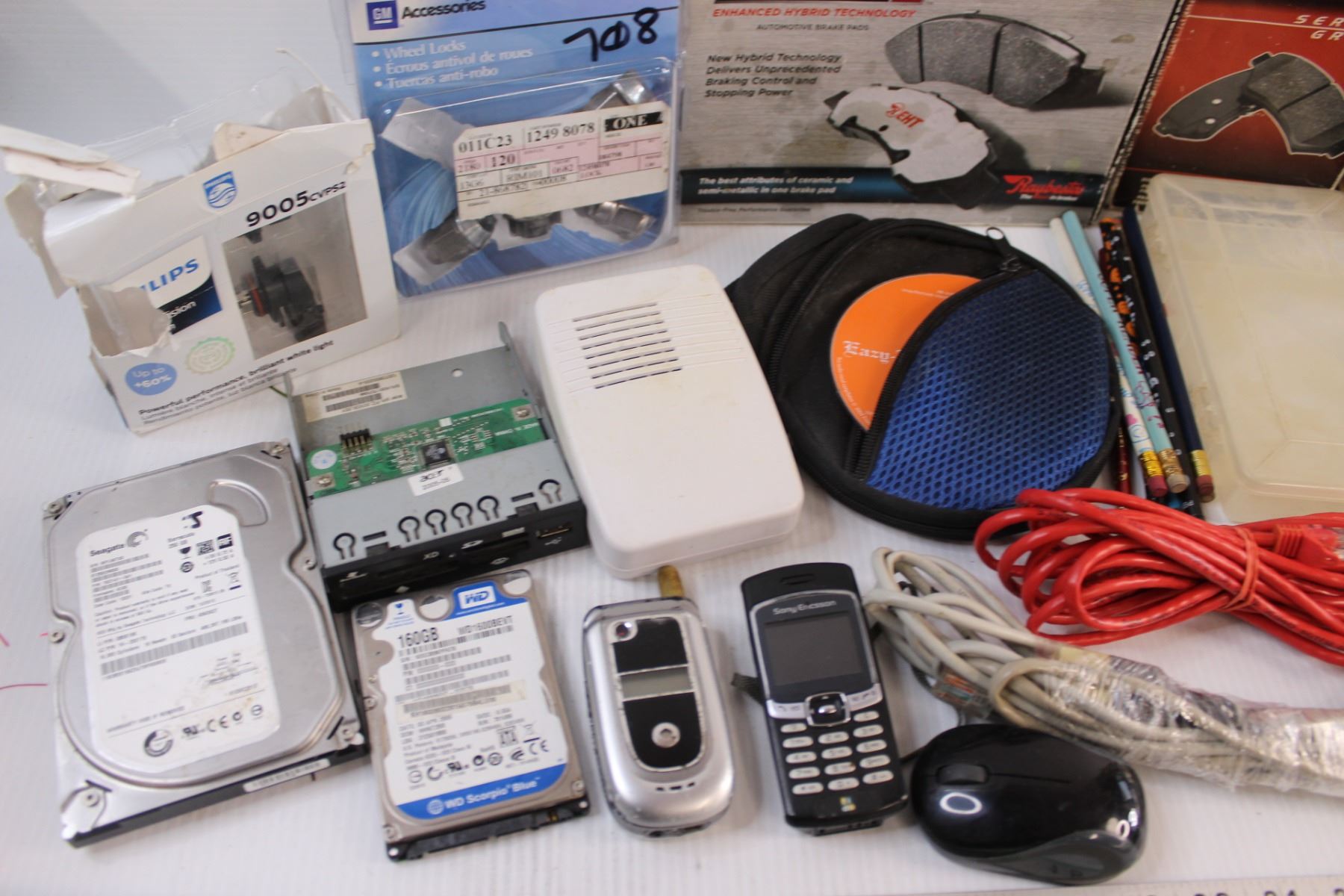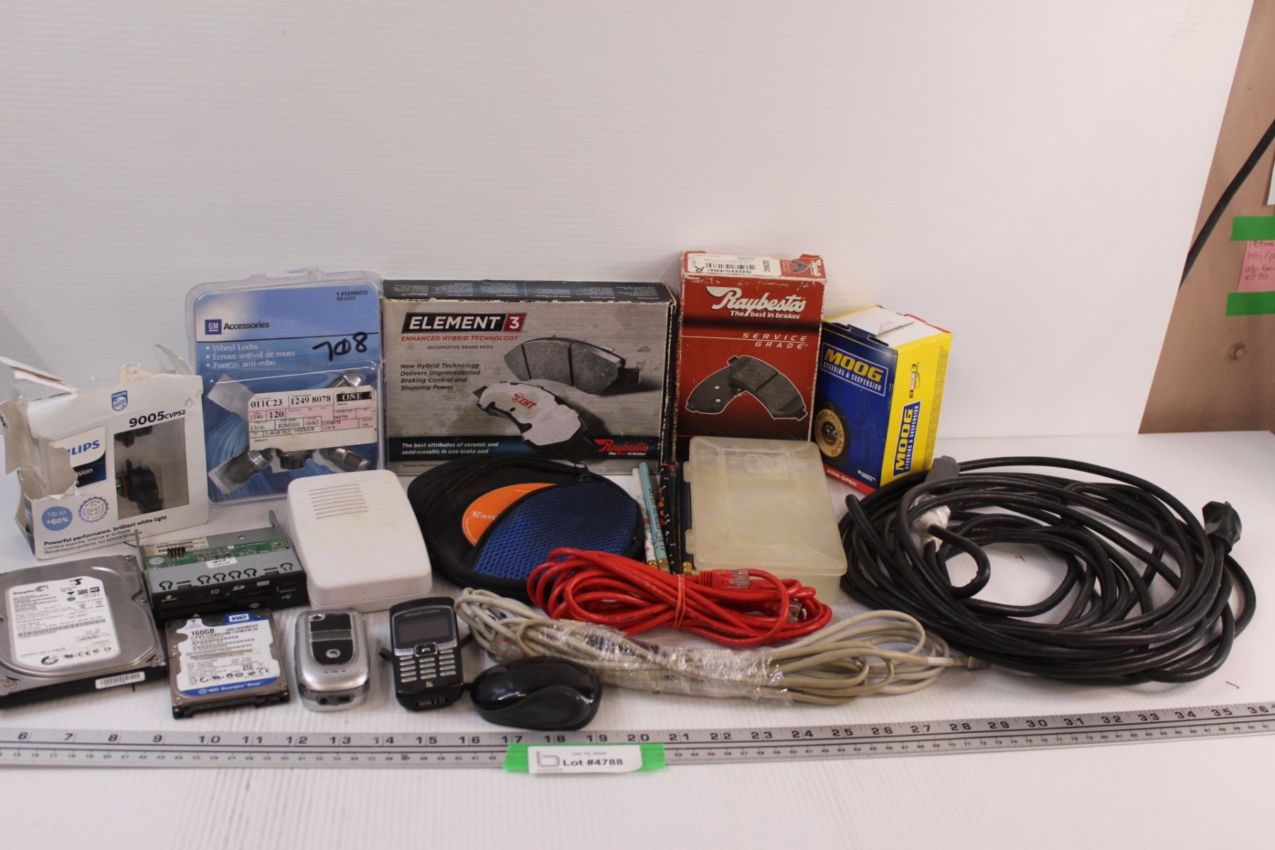 Lot: Extension Cord, GM Wheel Locks - Opened, Brake Pads, Wireless Mouse, Misc.