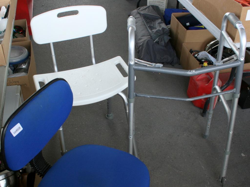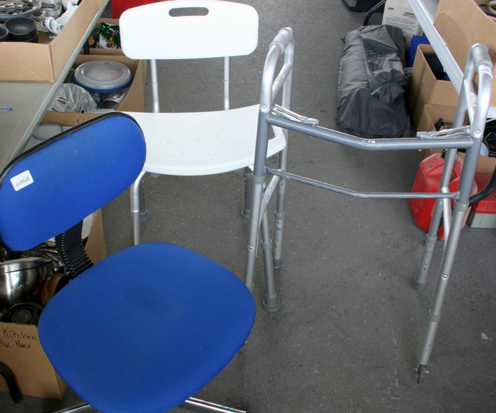 Lot- Handicap Shower Chair, Walker, Desk Chair