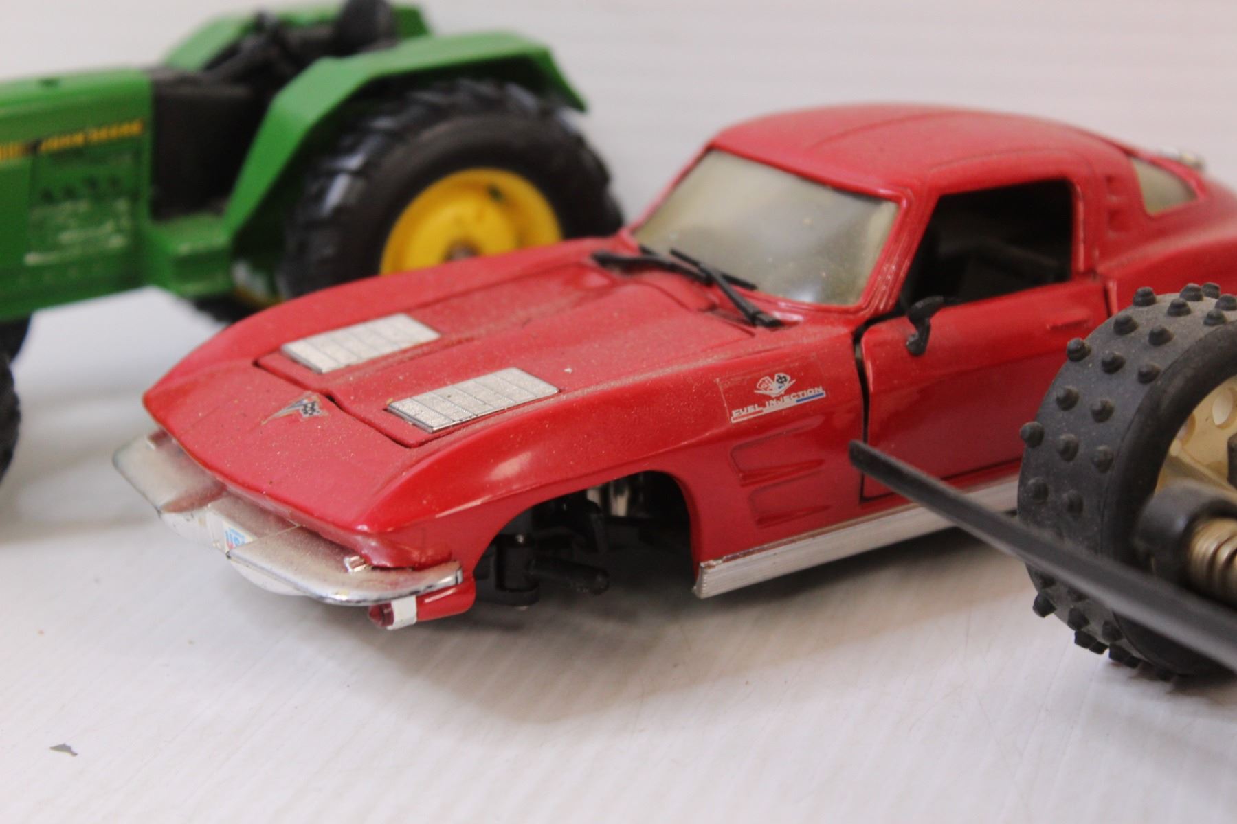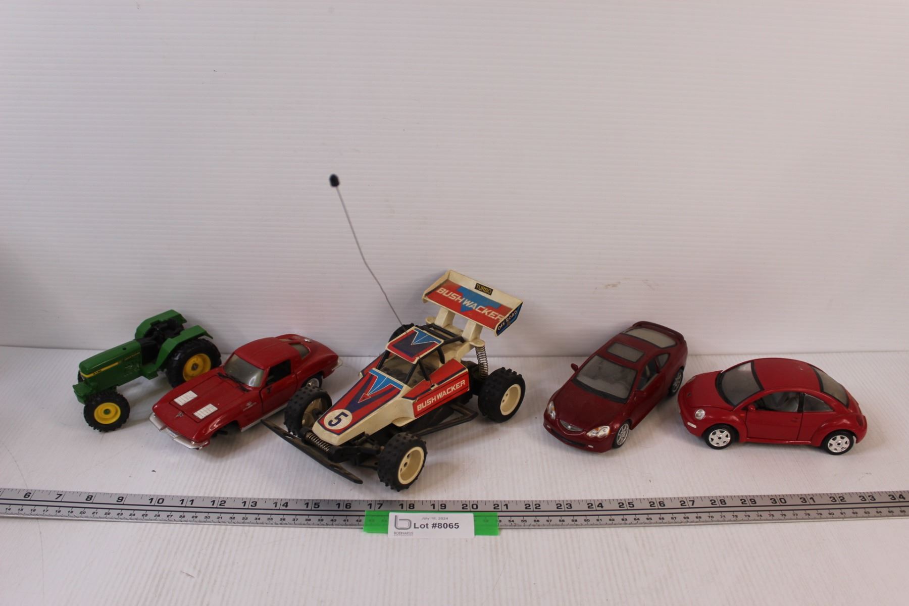 Lot: John Deere Tractor Toy, Remote Control Bush Wacker (no remote), Misc.