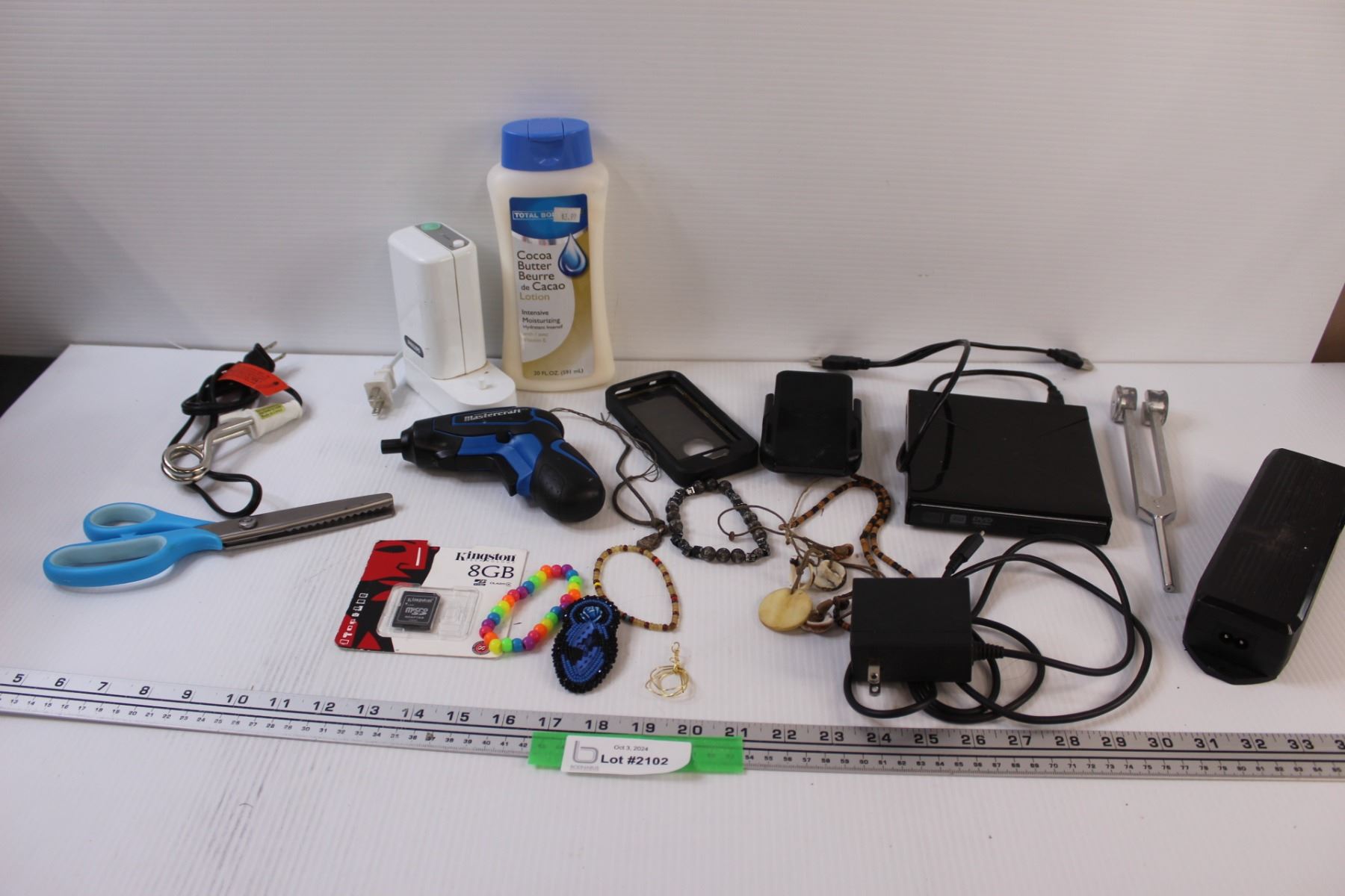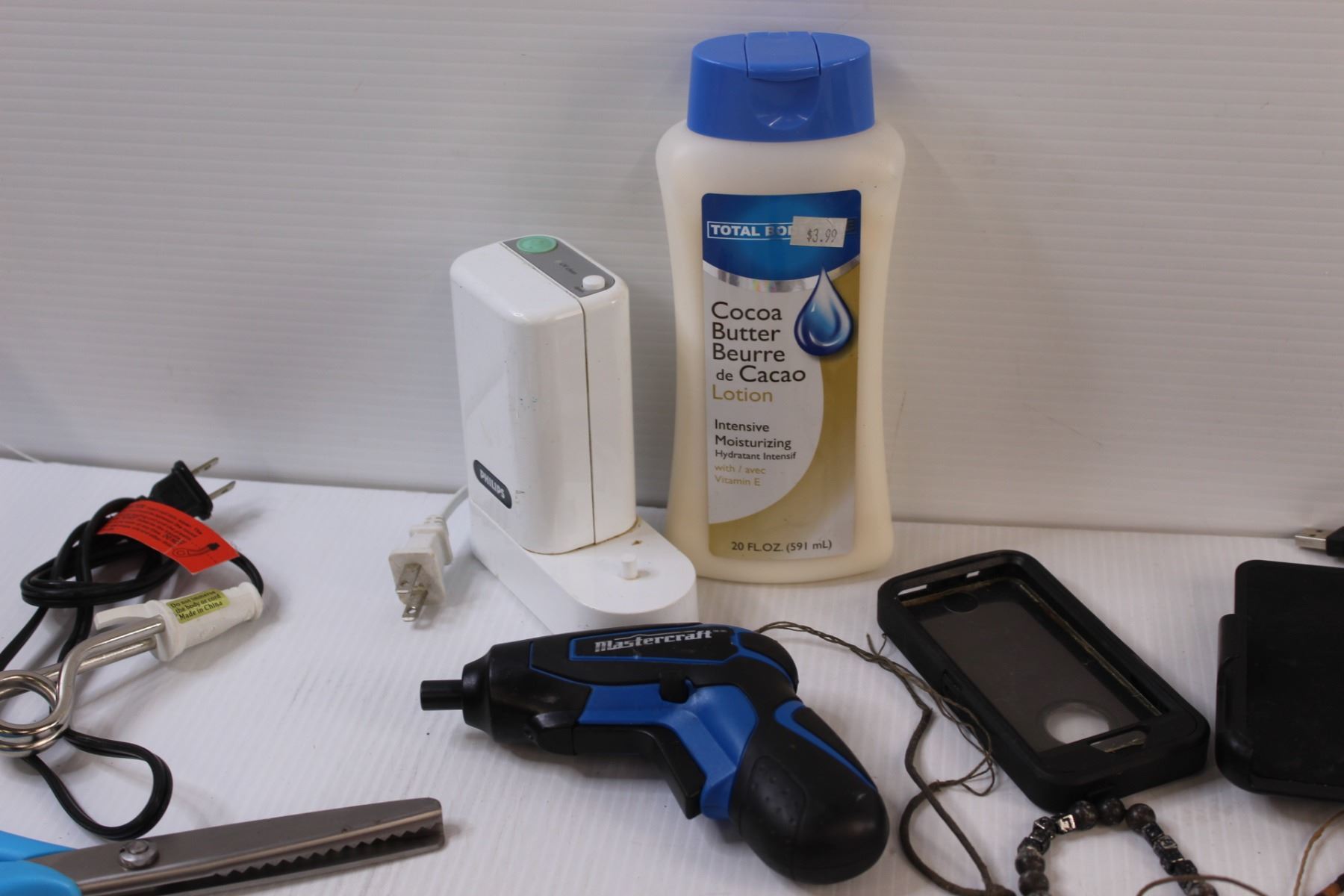 Lot: Mastercraft Battery Screwdriver, Zig Zag Scissors, Bracelets, Misc.