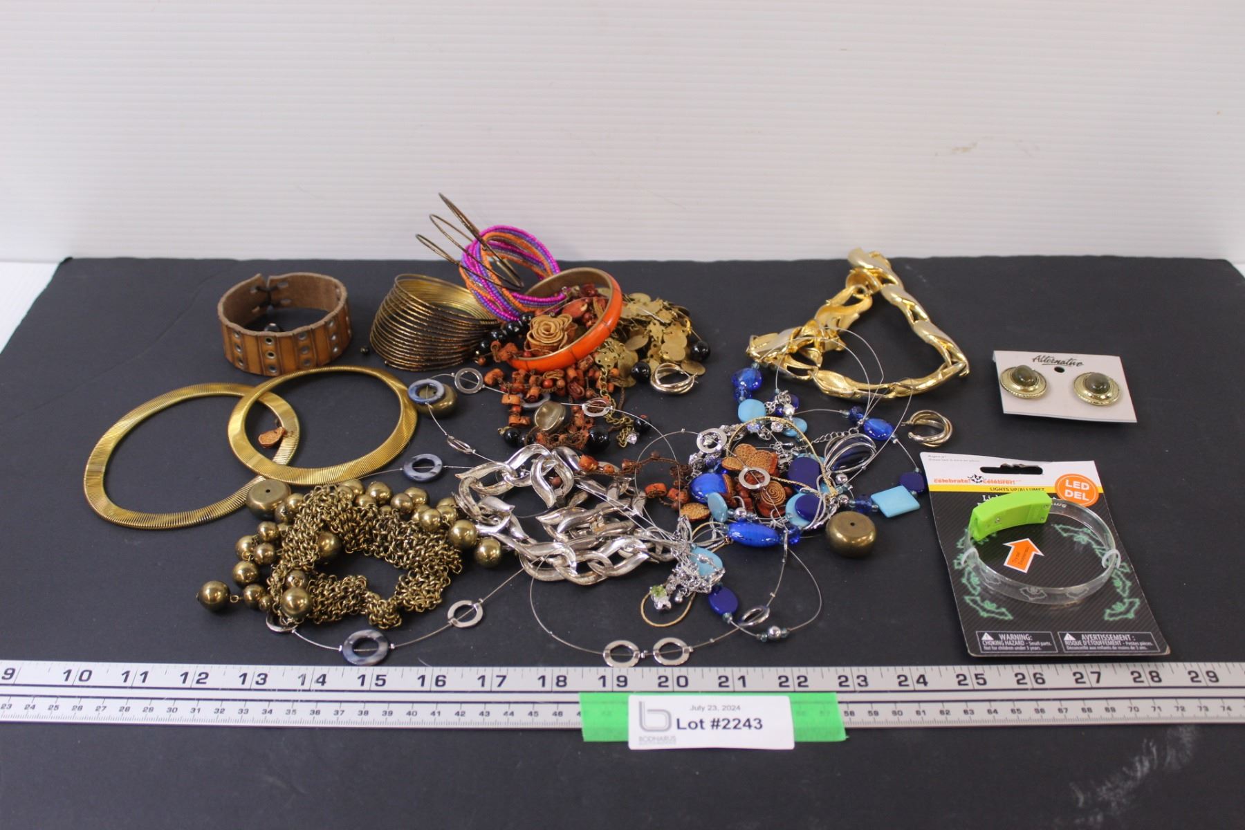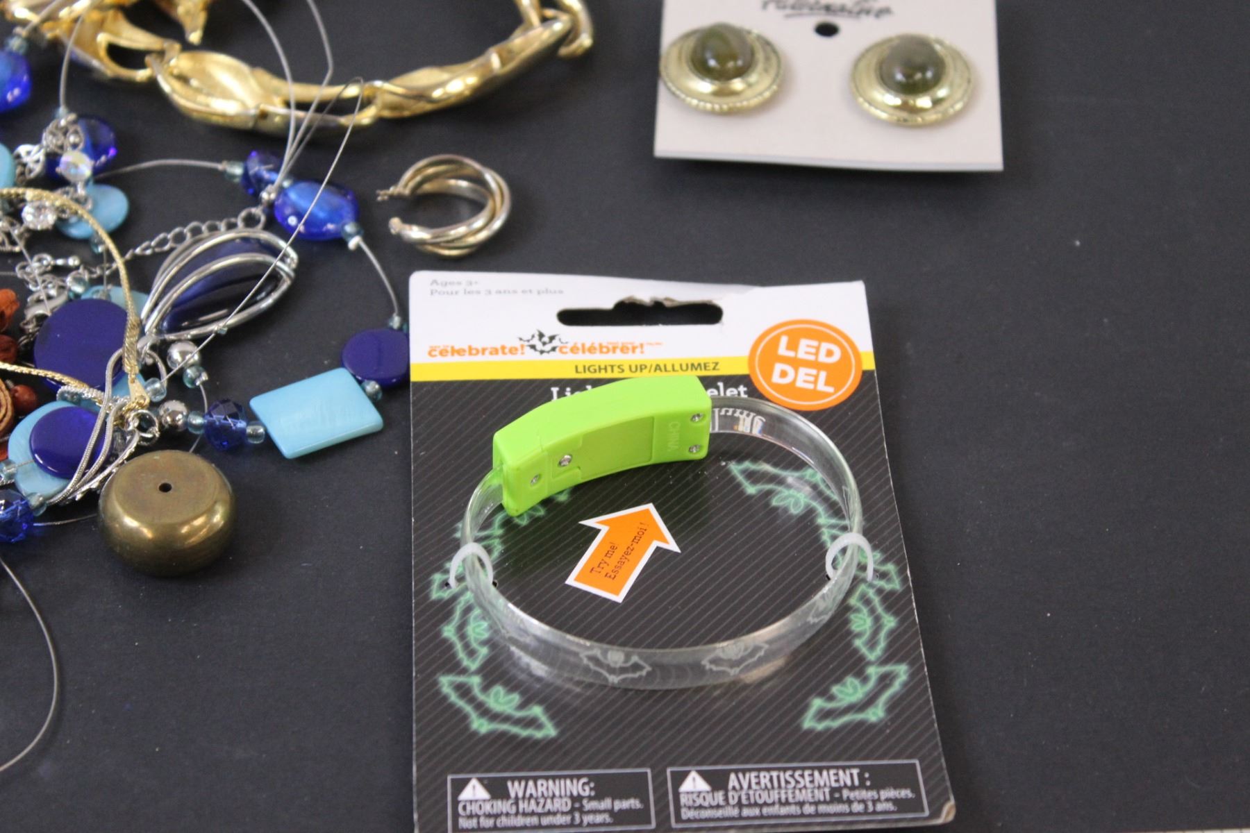 Lot: Necklaces & Light-up Bracelet - Works, & Various Bracelets & Clip-On Bracelets