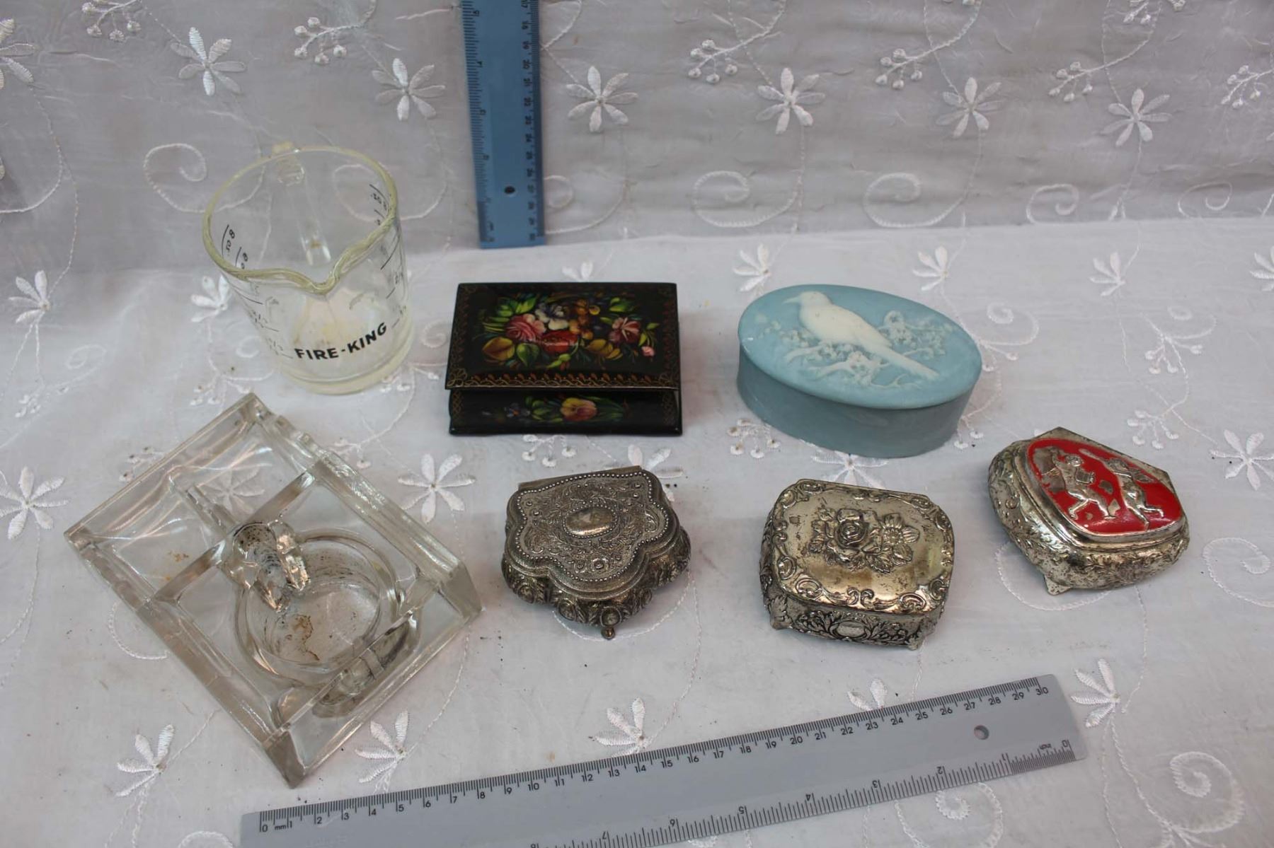 Lot OF Vintage Jewelry Boxes with Glass Measuring Cup and Glass Ink Well
