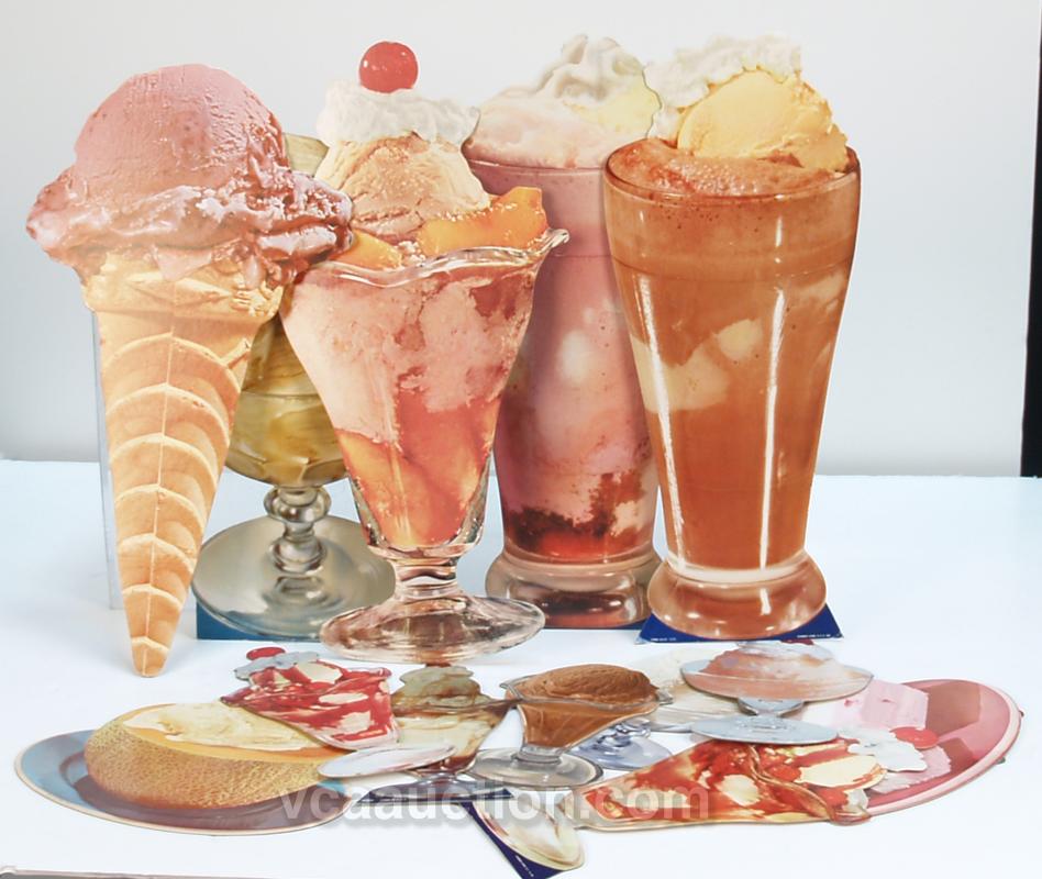 Lot Of 14 Die-Cut Cardboard Ice Cream Parlor Display Signs c1940's (all different sizes)