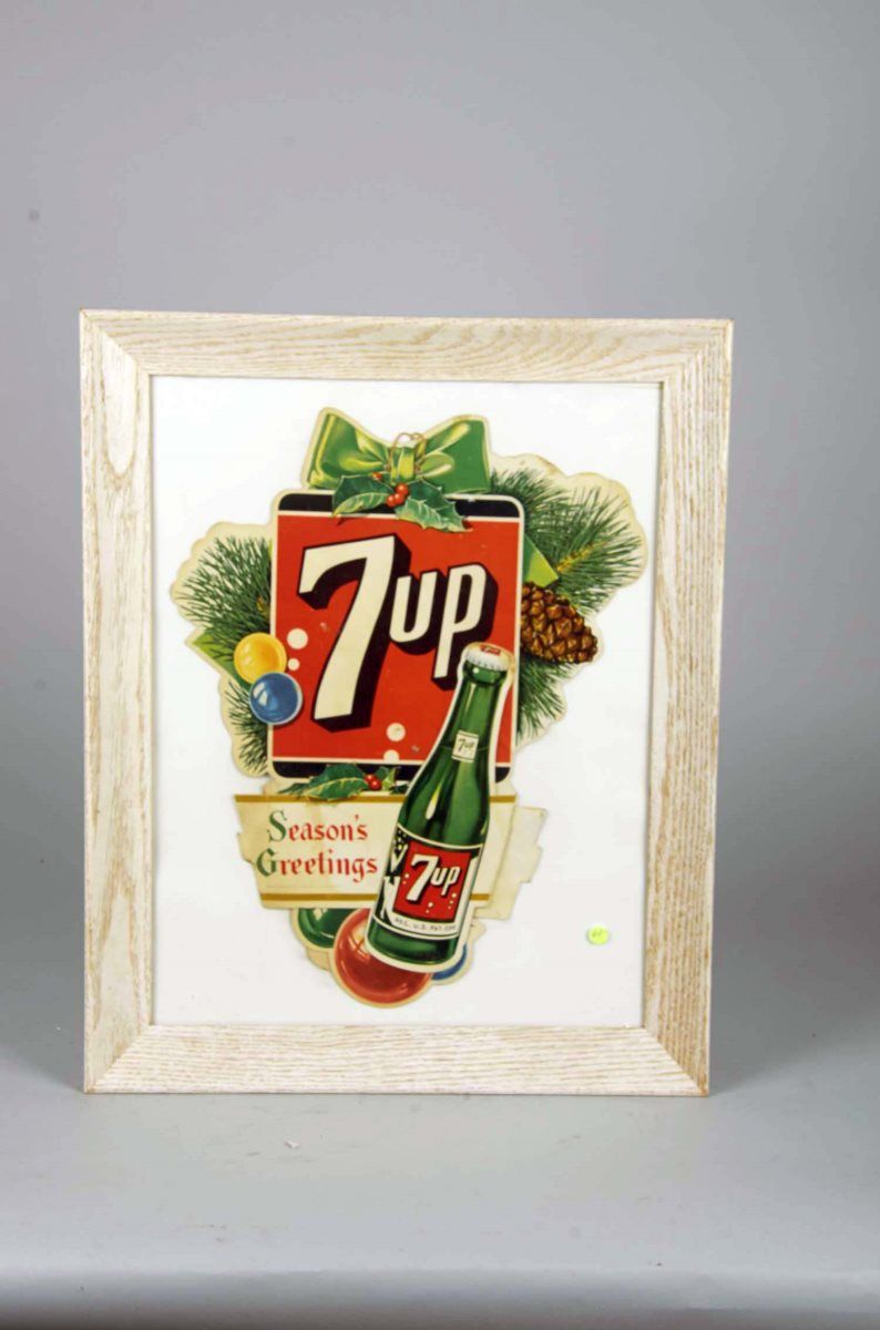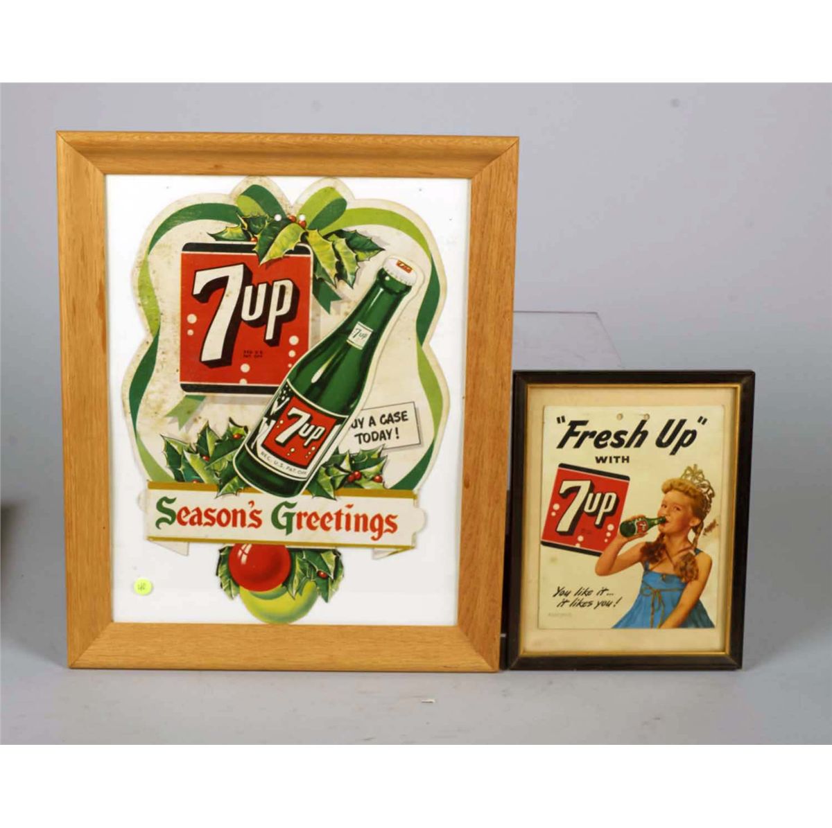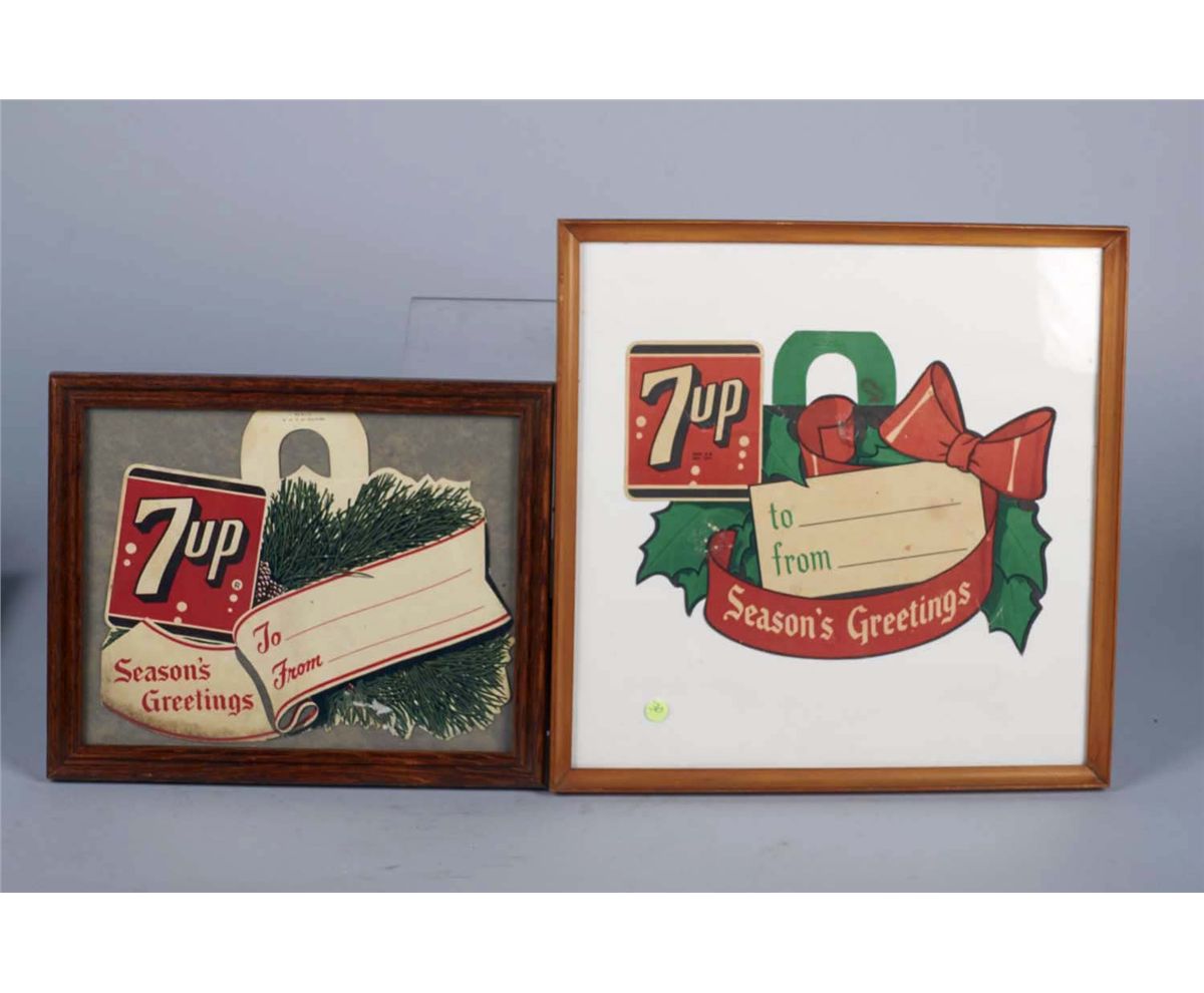 Most in frame under glass. Including 1 - "Season's Greetings," die cut litho circa 1951 (16-3/4" x 21"), 1 - "Season's Greetings, Buy a case today!" die cut litho circa 1951 (13" x 16"), 1 - "The All-Family Drink, You Like it...It Likes You!" litho circa