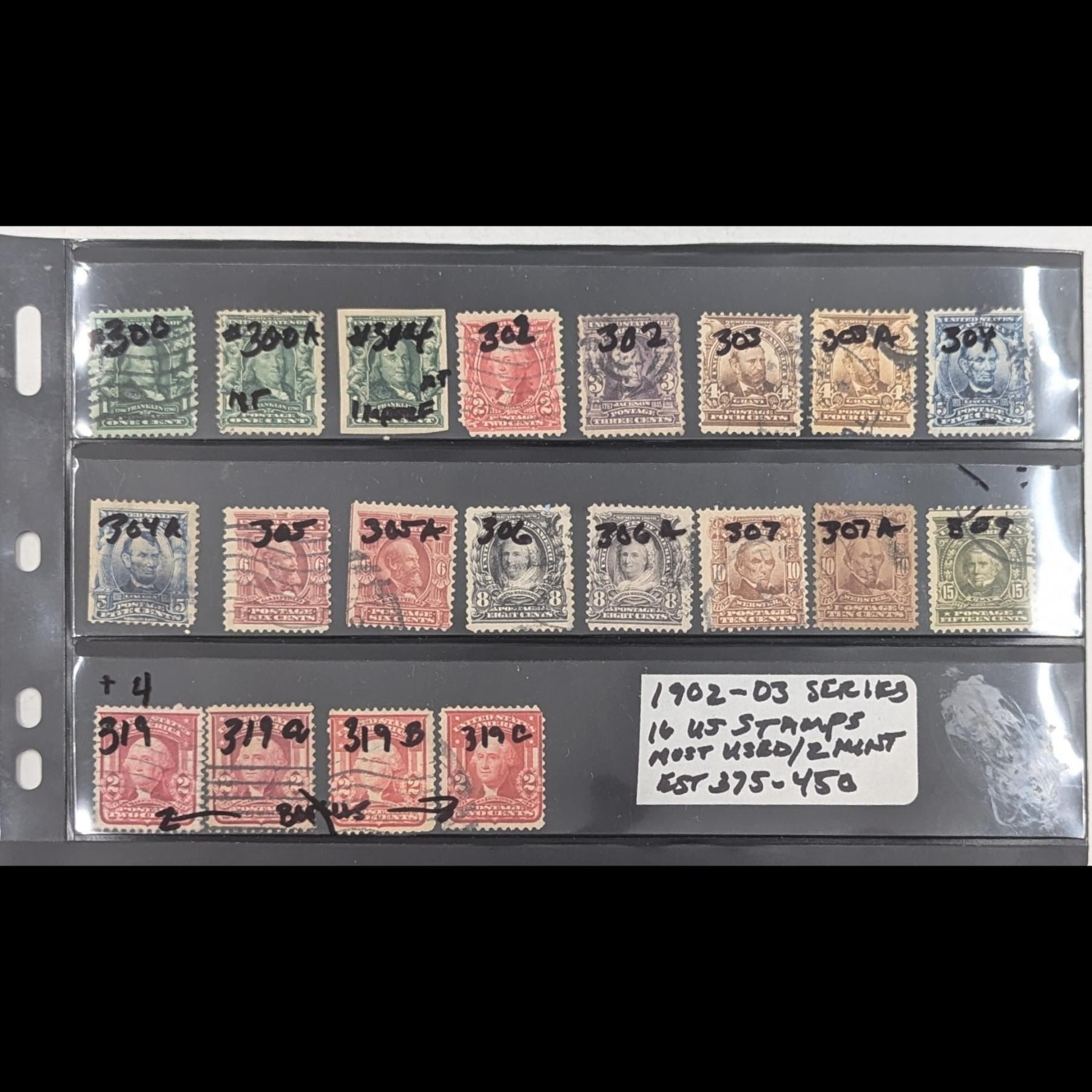 Lot Of 16 Used General Issue US Stamps Ranging From 1902-1903, Including Some With Color Variants. All in nice condition, with some visible postmarks.