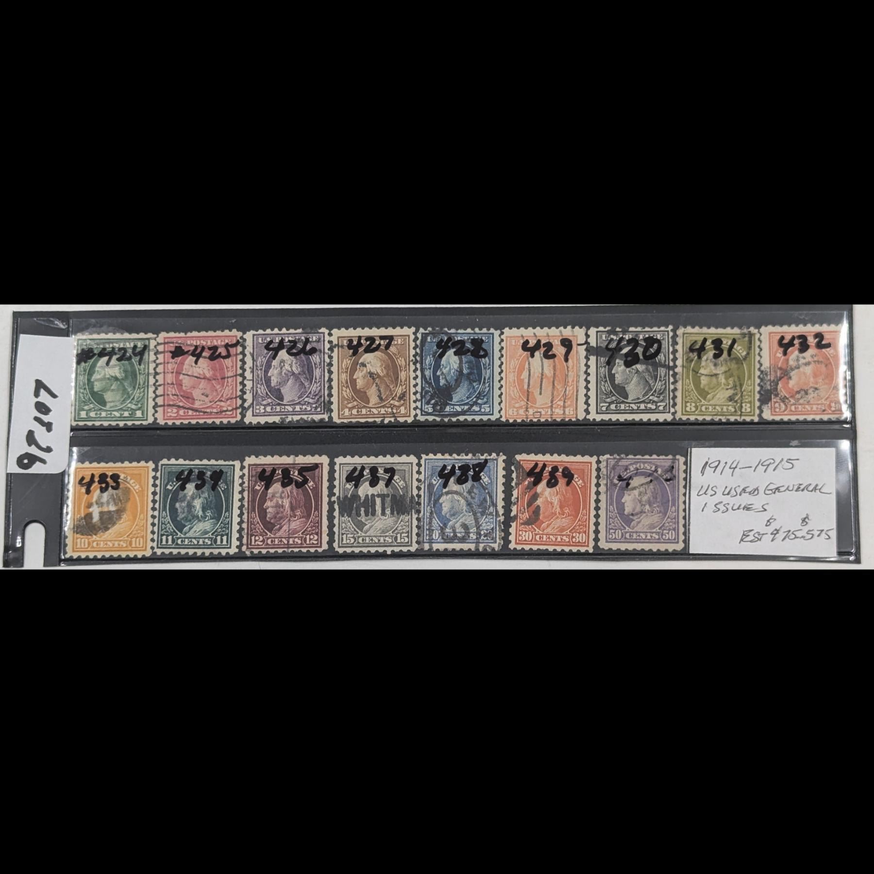 Lot Of 16 Used General Issue US Stamps Ranging From 1914-1915. All in nice condition, with some visible postmarks.