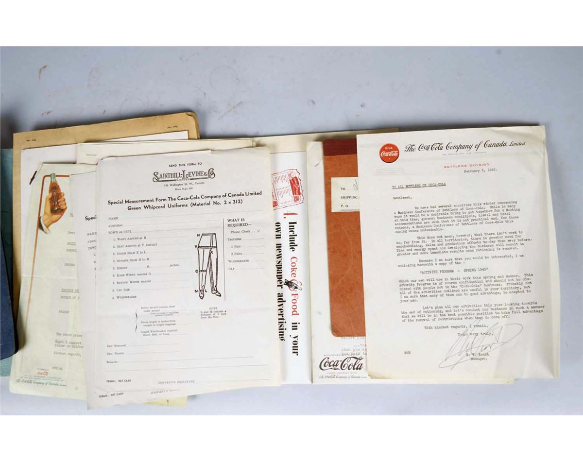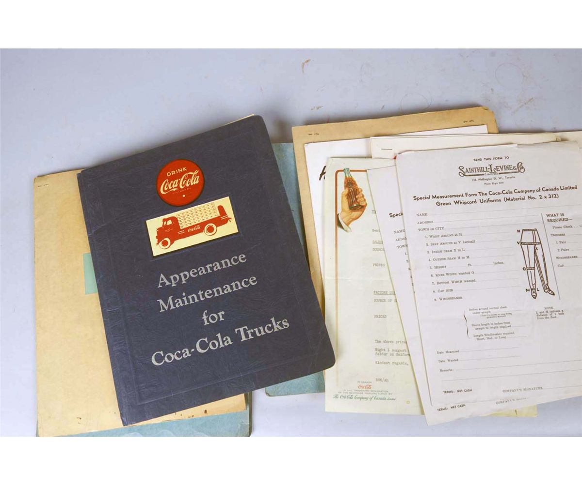 Including information, documentation, and guidelines for bottling, uniforms, and other employee information, also includes motivational pamphlets for sales personnel, truck maintenance and uniform order forms. Includes some handwritten notes and folded ed