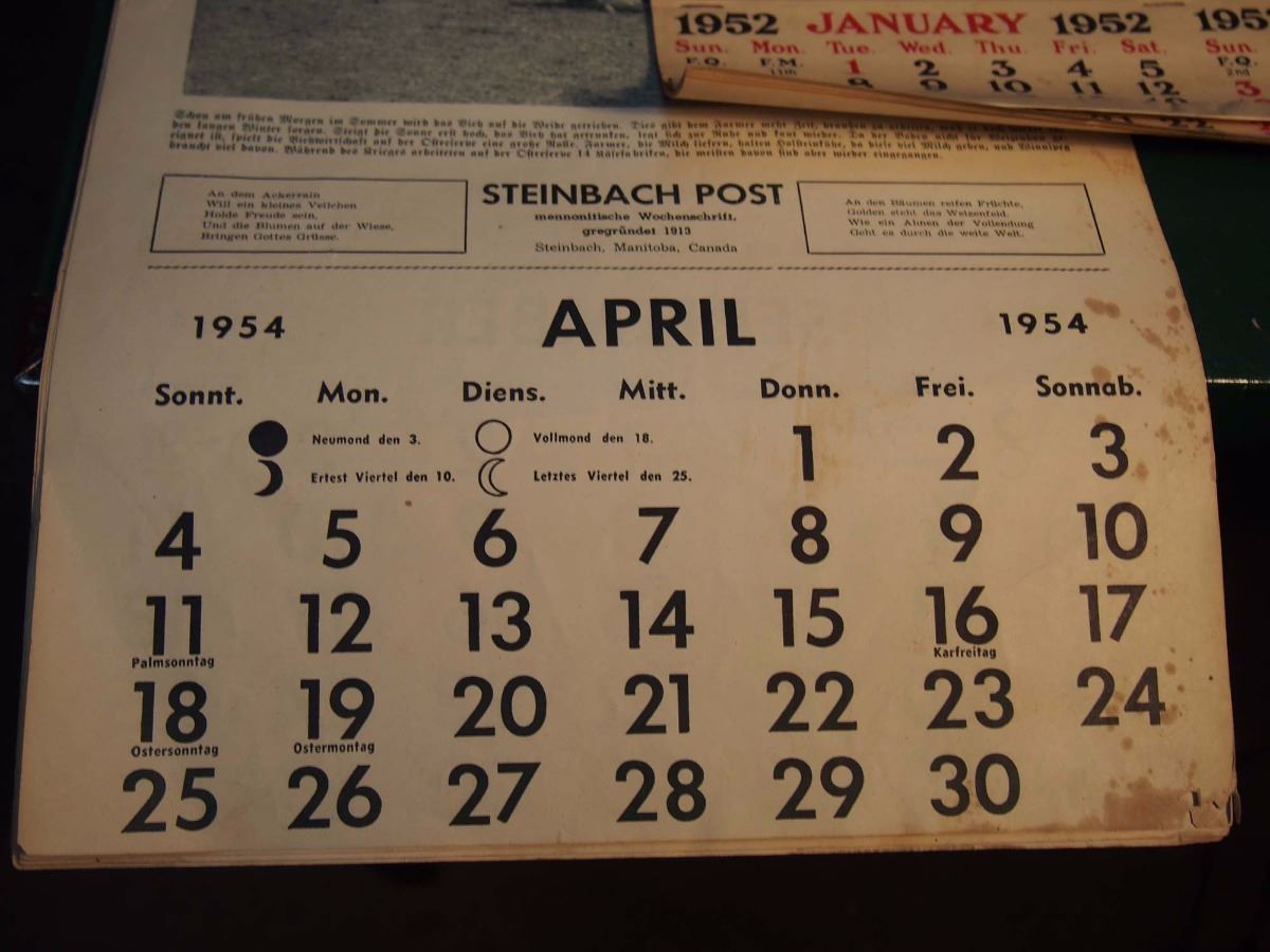 Lot Of 1950s Calendars (Hague Sask, Stienbach Man, Ogena Sask)