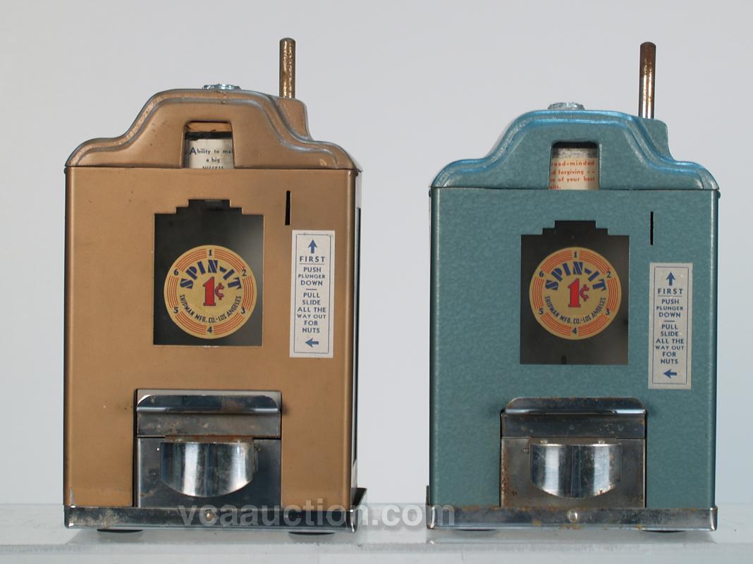 Lot Of 2, 1 Cent Countertop Metal "Spin-It" Trade Stimulators c1937 by Shipman MFG. Co. Los Angeles