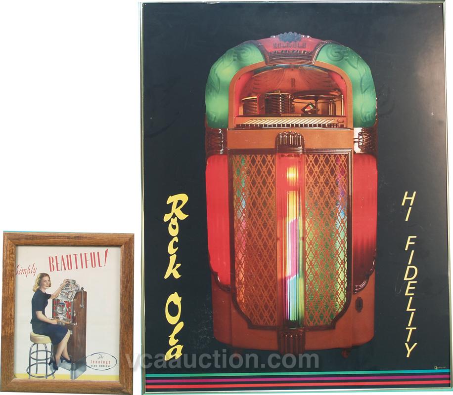 Lot Of 2 Advertising Prints In Frames: 1 - Rock-Ola Hi Fidelity Jukebox print - 22" x 28" & 1 - Jennings slot machine catalog ad - 9" x 11"